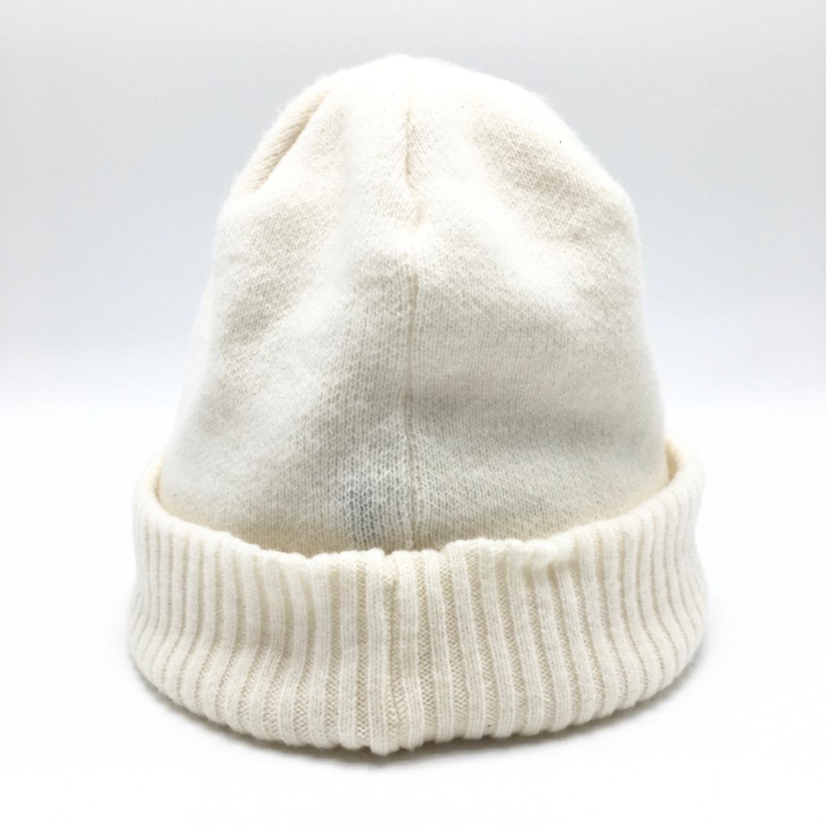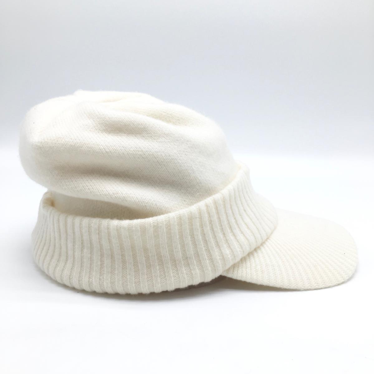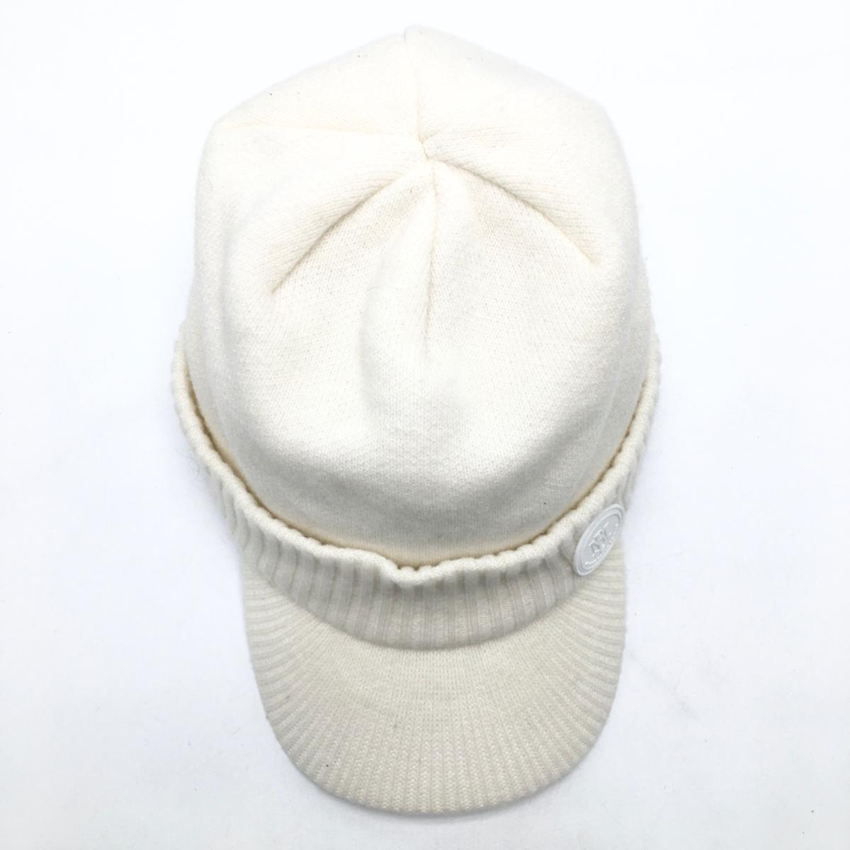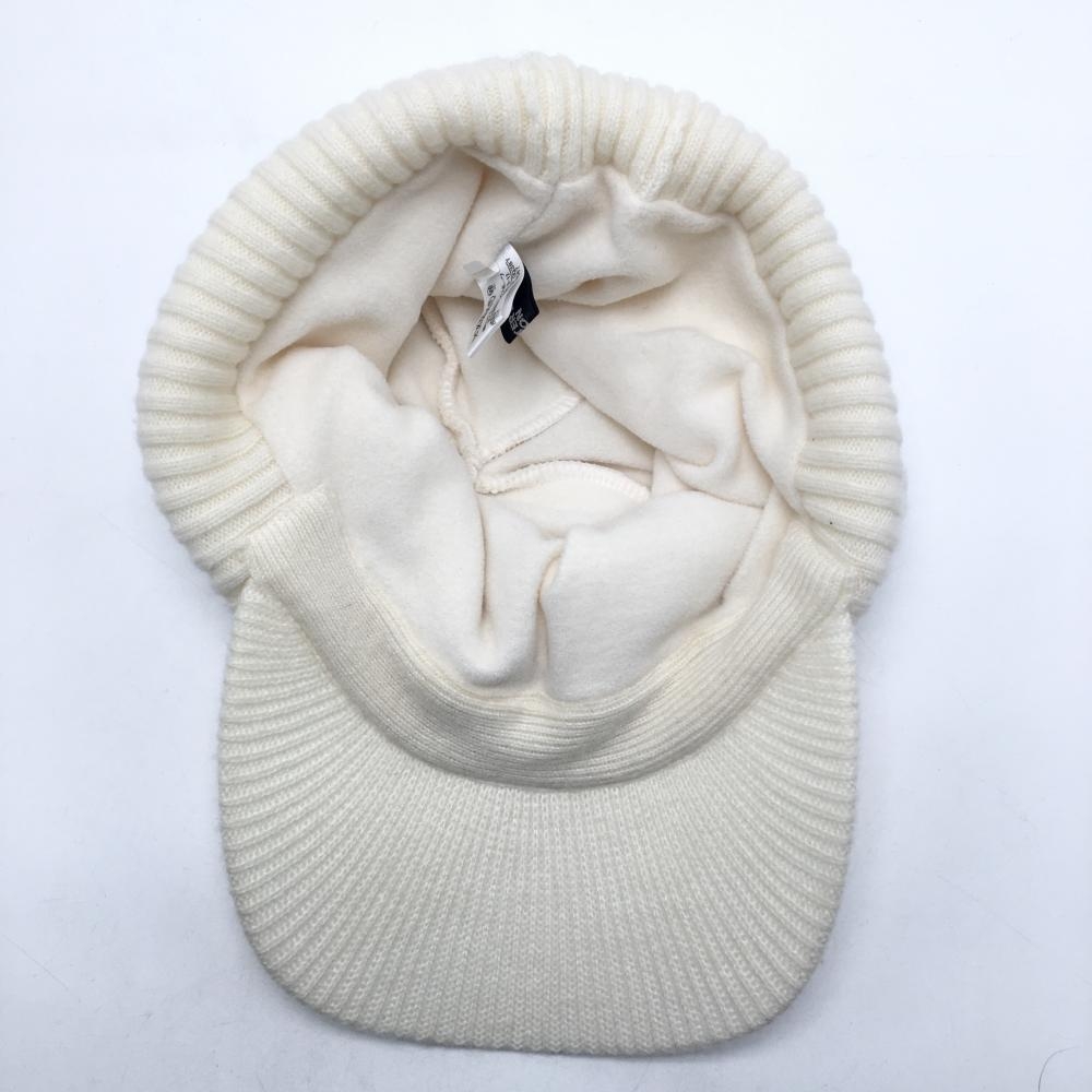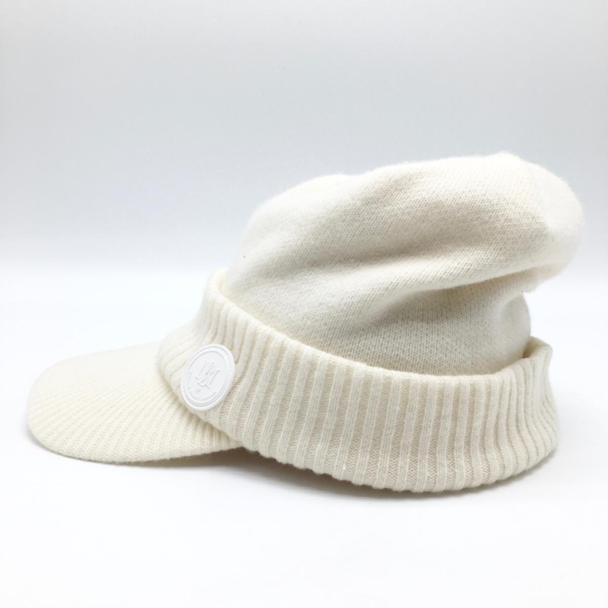 【美品】マスターバニー つば付ニット帽 白 内側フリース ウール混 FR ゴルフウェア MASTER BUNNY EDITION