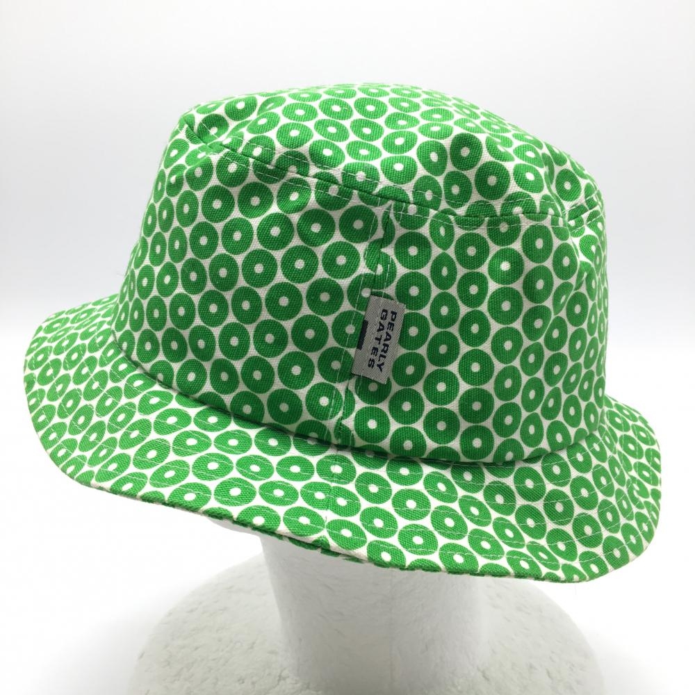 パーリーゲイツ ハット グリーン×白 総柄 額・縁汚れ S ゴルフウェア PEARLY GATES