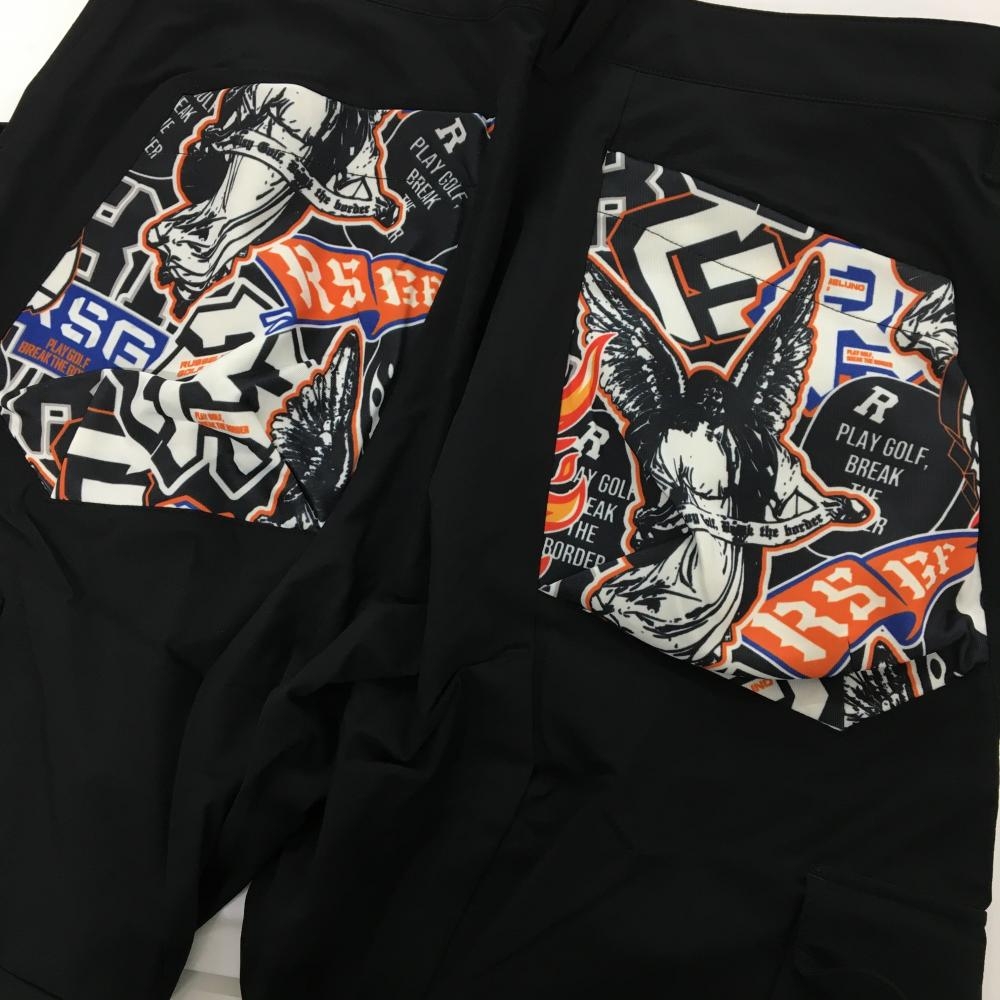 【超美品】ラッセルノ パンツ 黒 ルチャマスク 後ポケット総柄 メンズ 6(XL) ゴルフウェア 2024年モデル RUSSELUNO