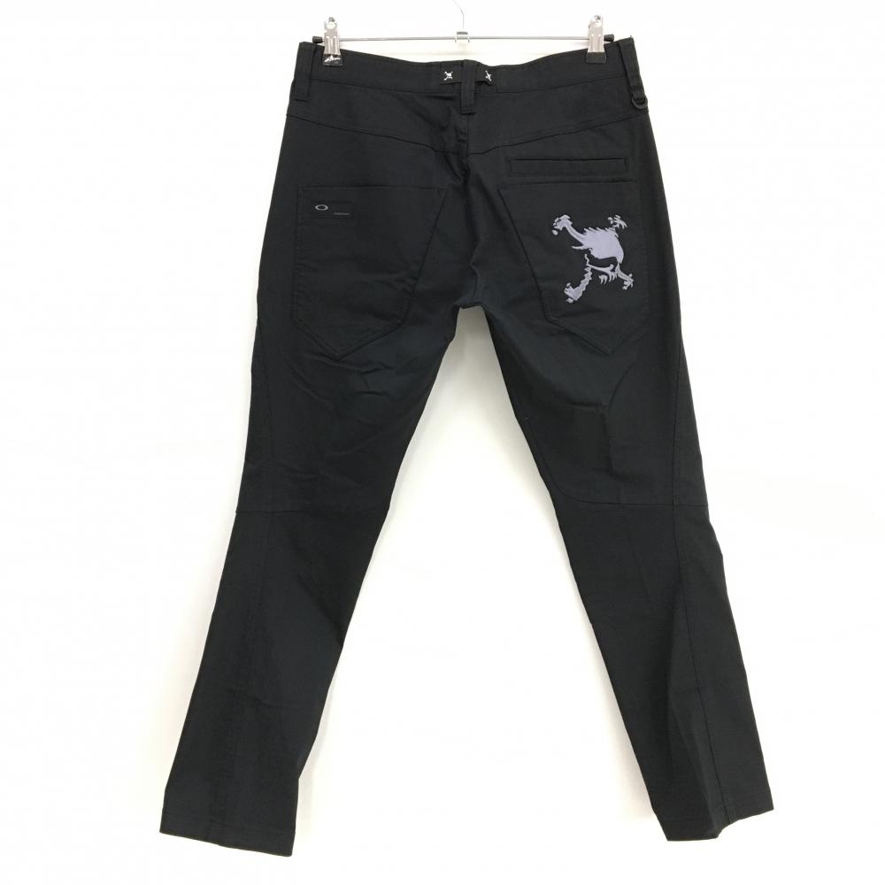 【美品】オークリー パンツ 黒 複数ポケット ロゴグレー メンズ 32 ゴルフウェア Oakley