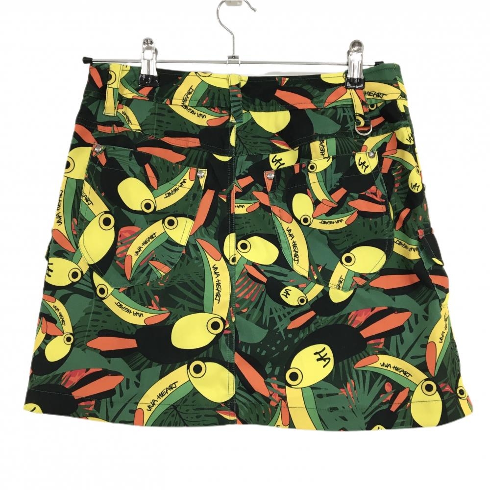 【超美品】ビバハート スカート 黒×イエロー×グリーン トリ・リーフ総柄 内側インナーパンツ レディース 40(M) ゴルフウェア VIVA HEART