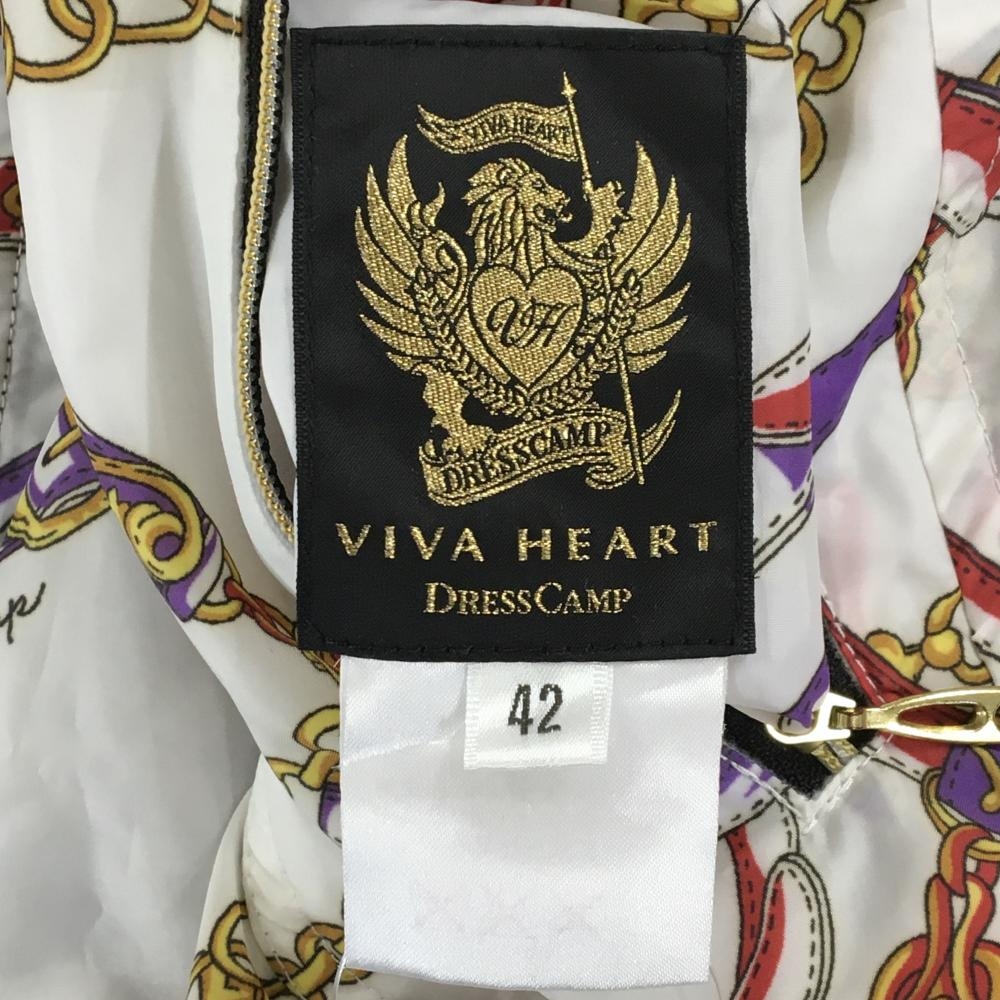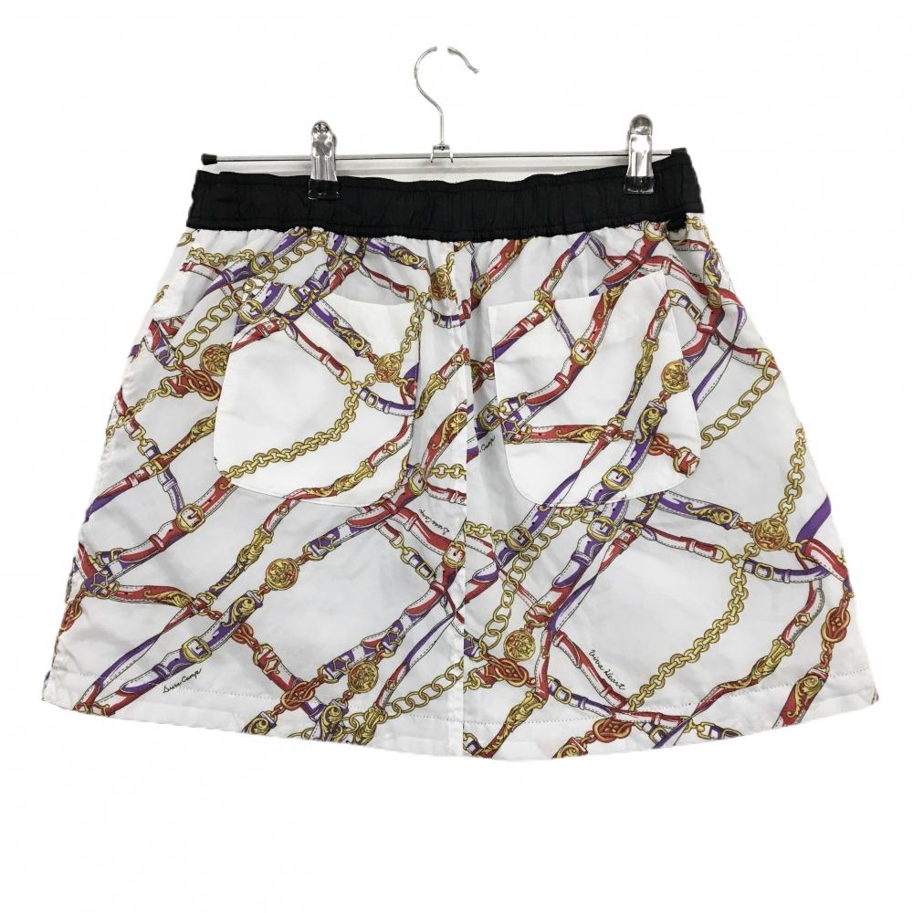 【超美品】ビバハート 中綿リバーシブルスカート 白×レッド×イエロー チェーンベルト総柄 レディース 42(L) ゴルフウェア VIVA HEART