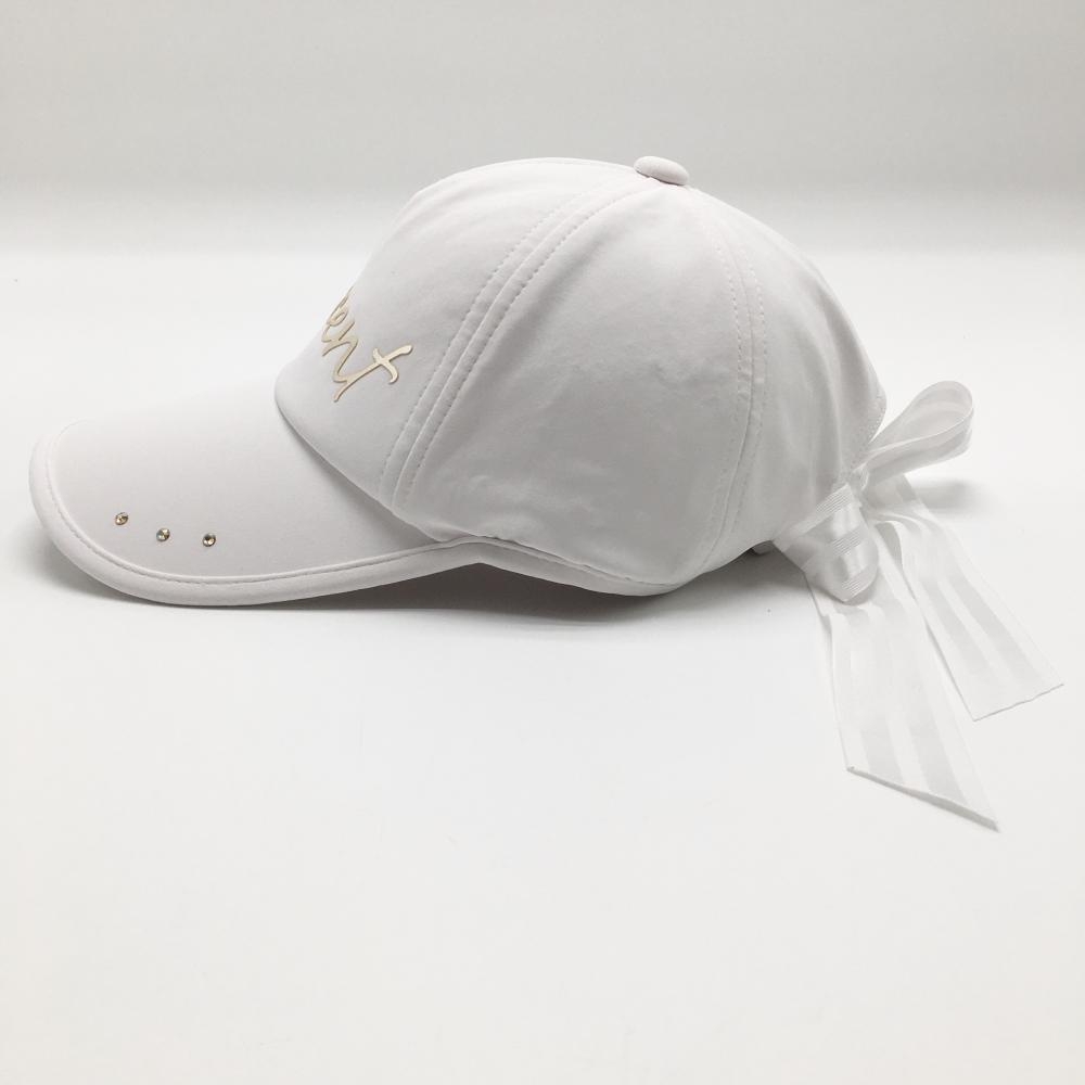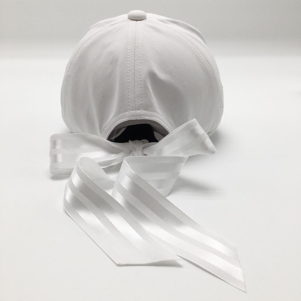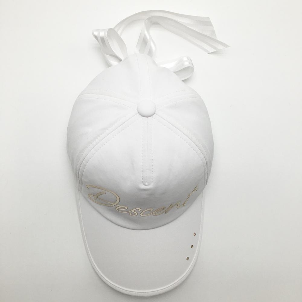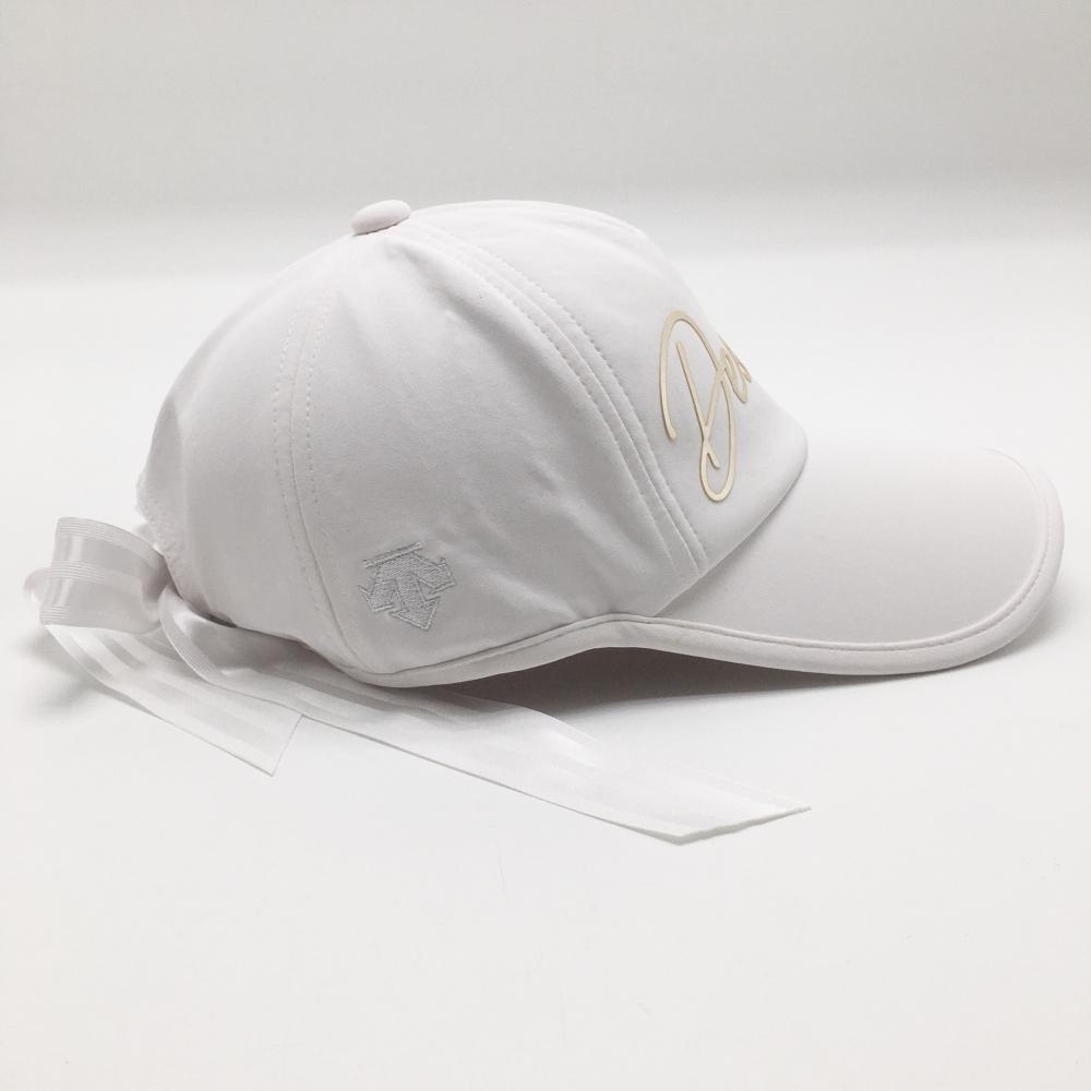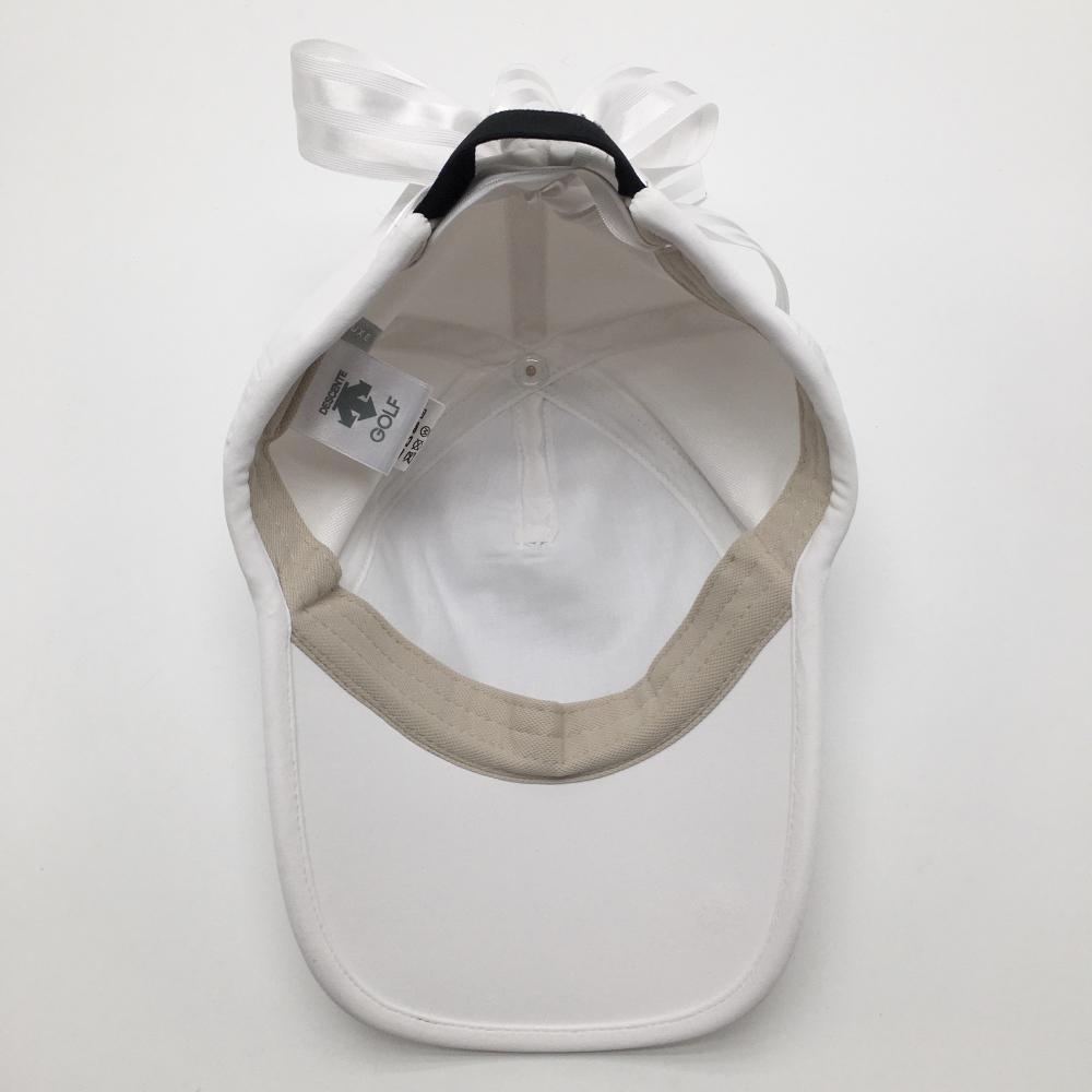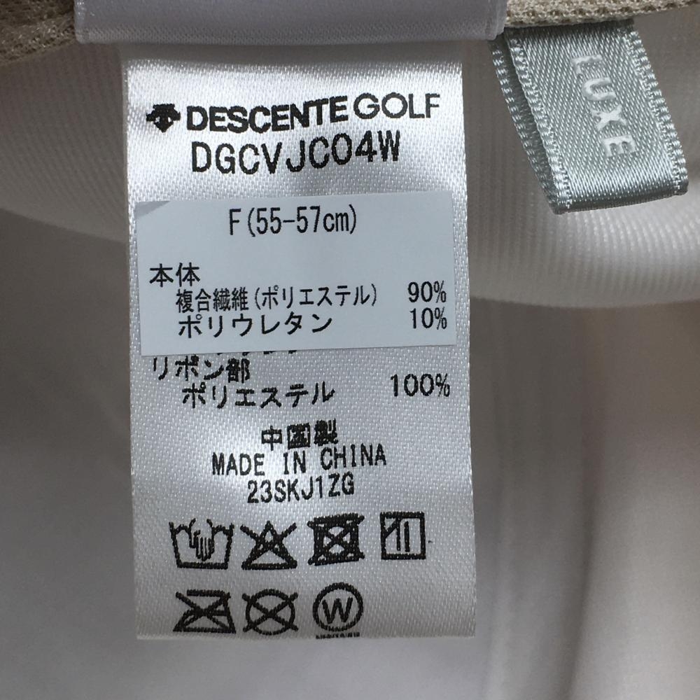 【美品】デサントゴルフ LUXE COLLECTION キャップ 白×ベージュ系 後ろリボン レディース F(55-57cm) ゴルフウェア 2023年モデル DESCENTE