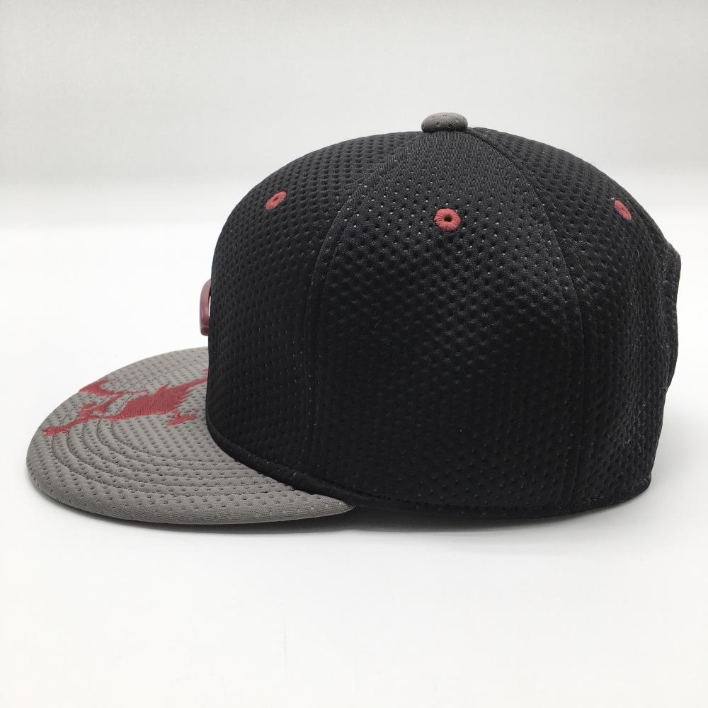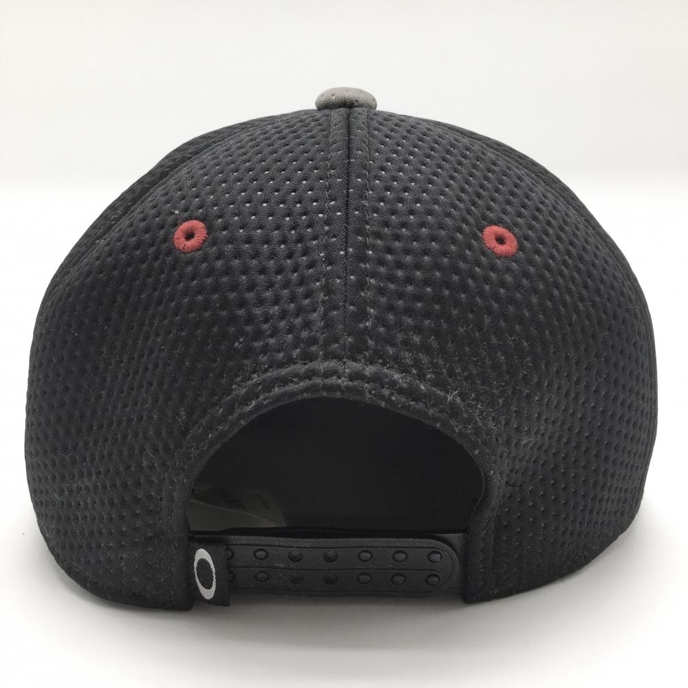 【美品】オークリー フラットキャップ 黒×グレー×ボルドー系 ビッグロゴ ゴルフウェア Oakley