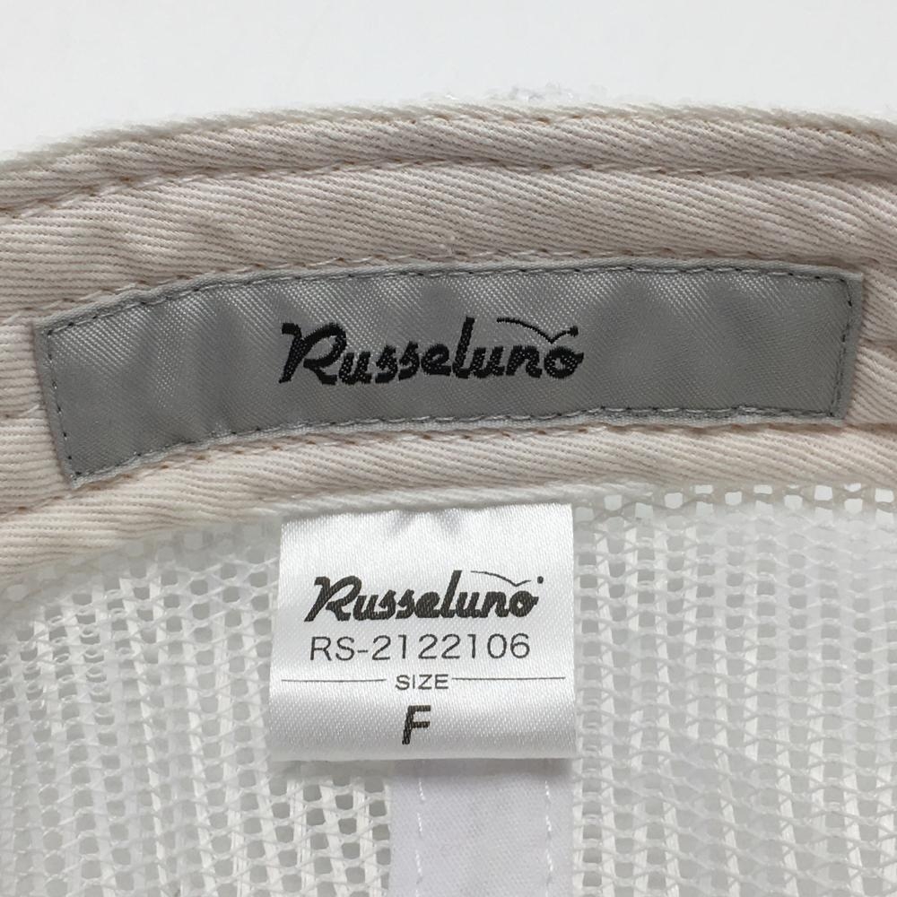 【美品】ラッセルノ メッシュフラットキャップ 白×イエロー スマイル F ゴルフウェア RUSSELUNO