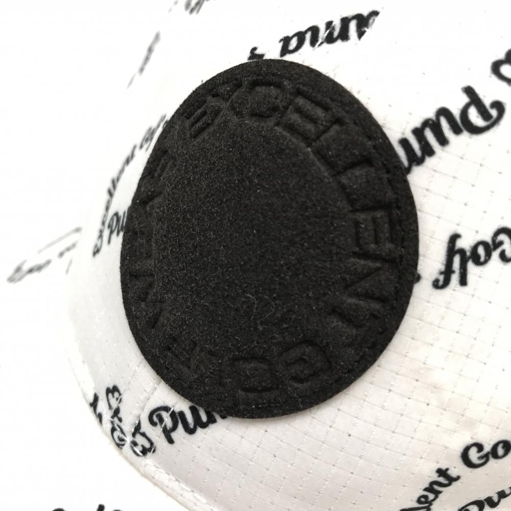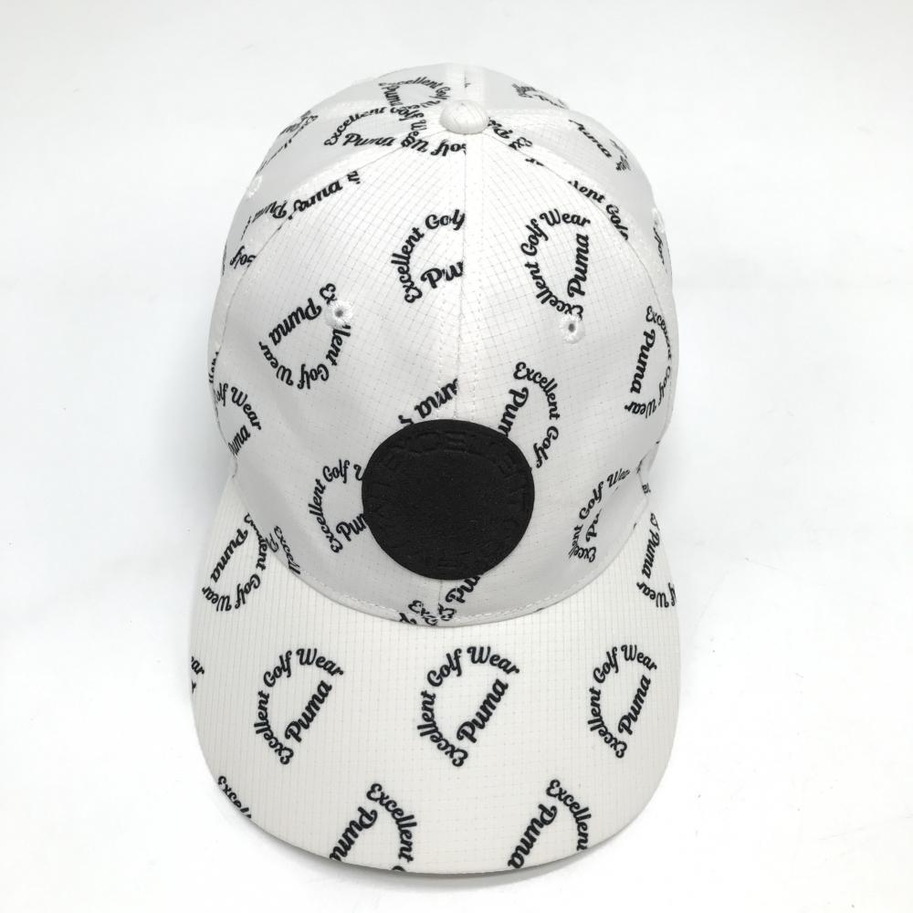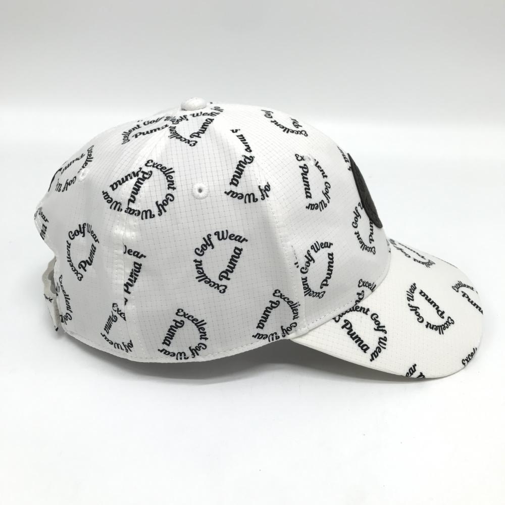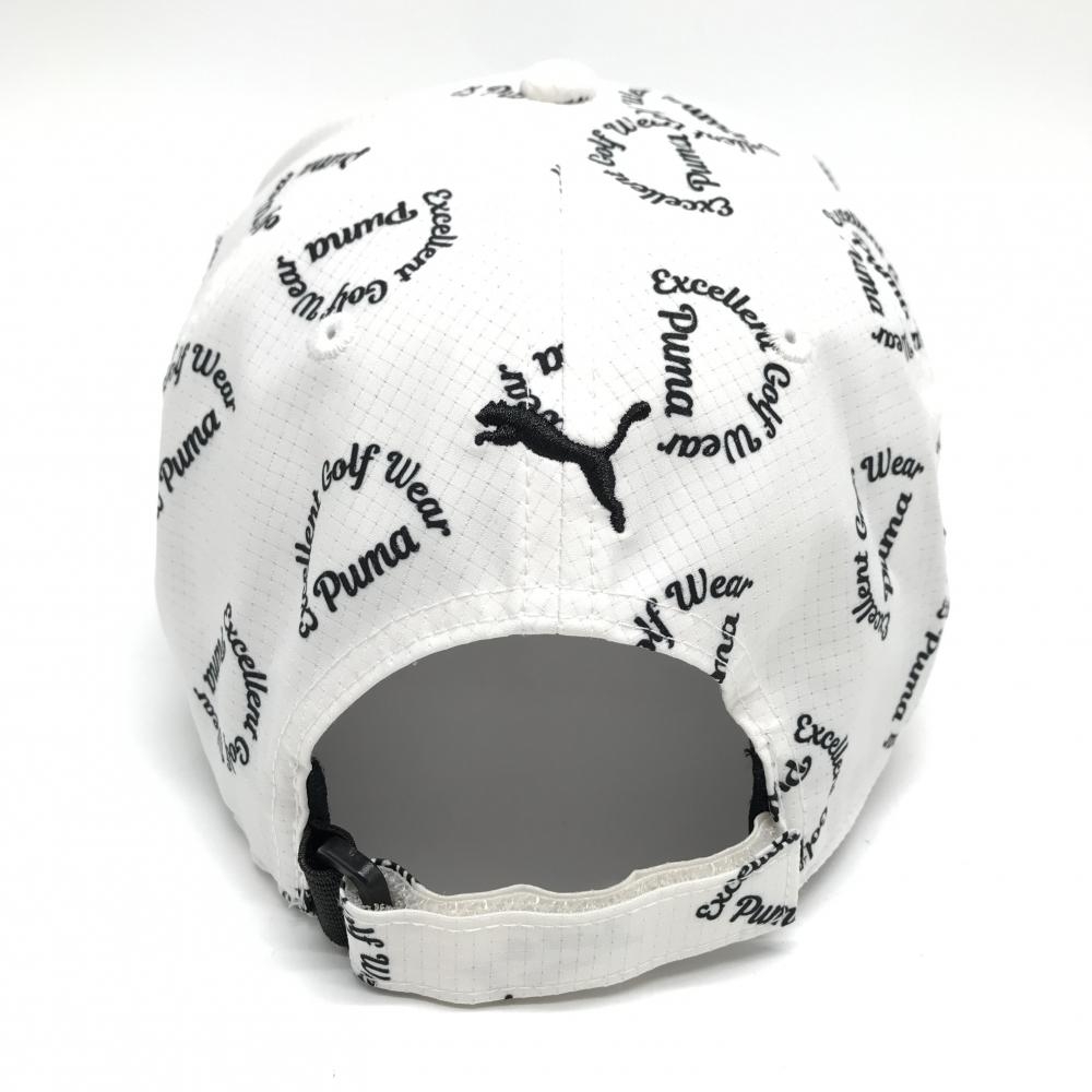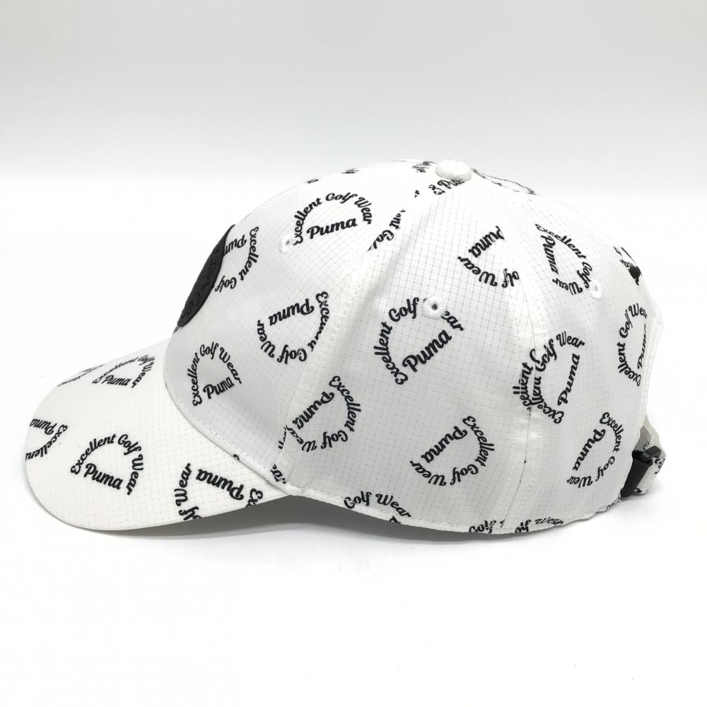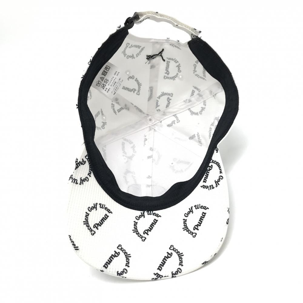 【超美品】プーマ キャップ 白×黒 ロゴ英字総柄 フロントワッペン OneSizeFitsAll(56~59cm) ゴルフウェア PUMA