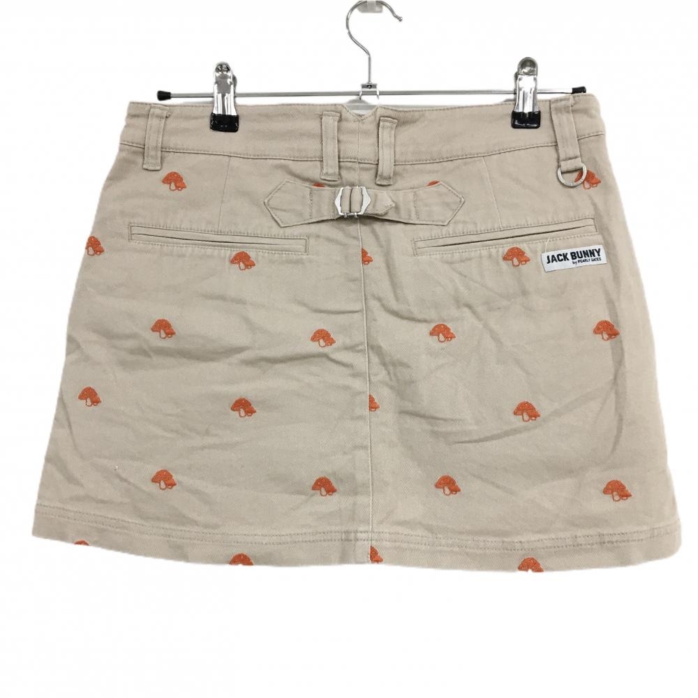 ジャックバニー スカート ベージュ×オレンジ キノコ柄 バックロゴ レディース 2(L) ゴルフウェア Jack Bunny