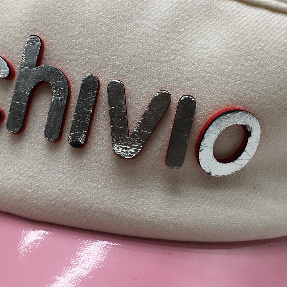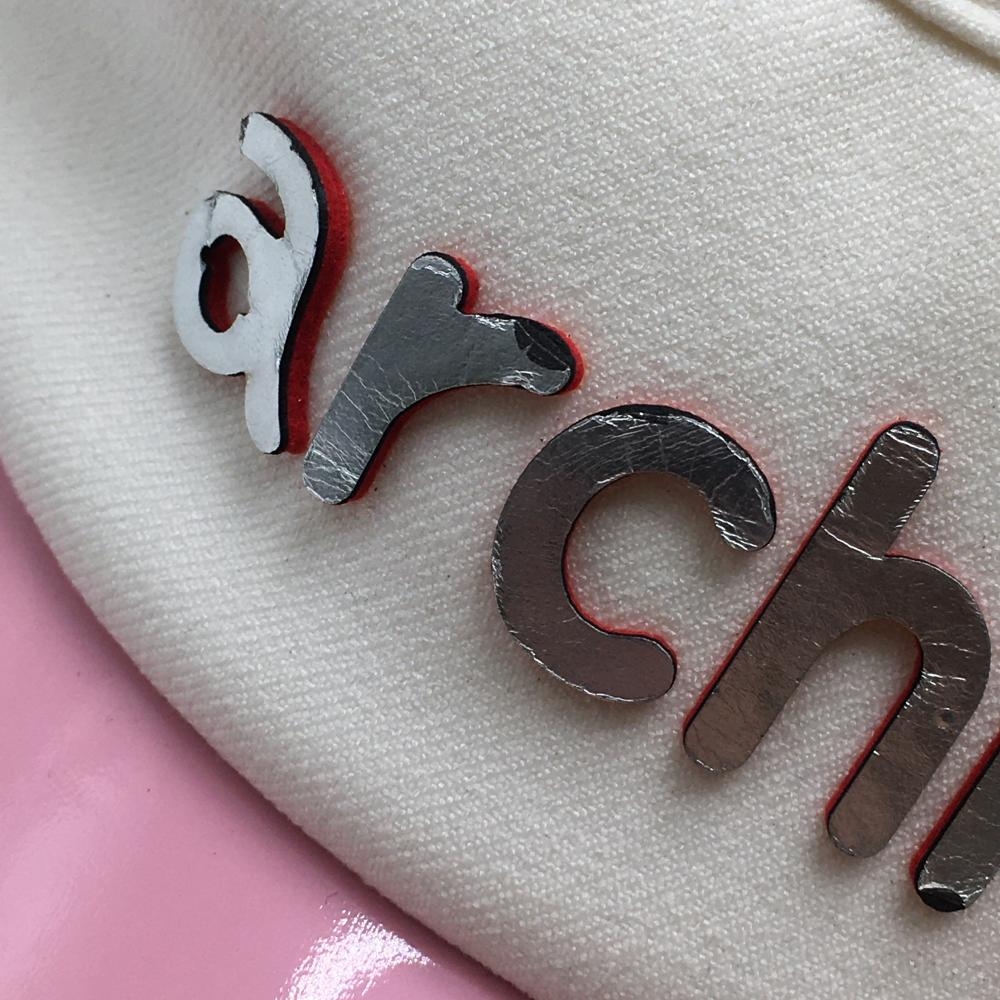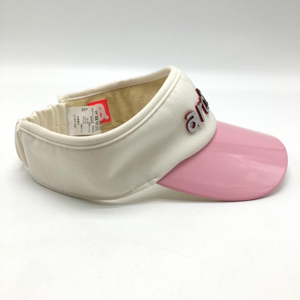 【美品】アルチビオ サンバイザー 白×ピンク つばエナメル調 ロゴ レディース ゴルフウェア archivio