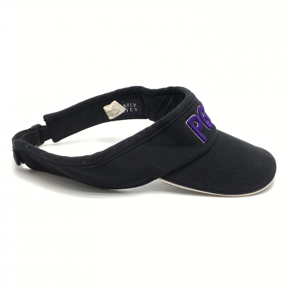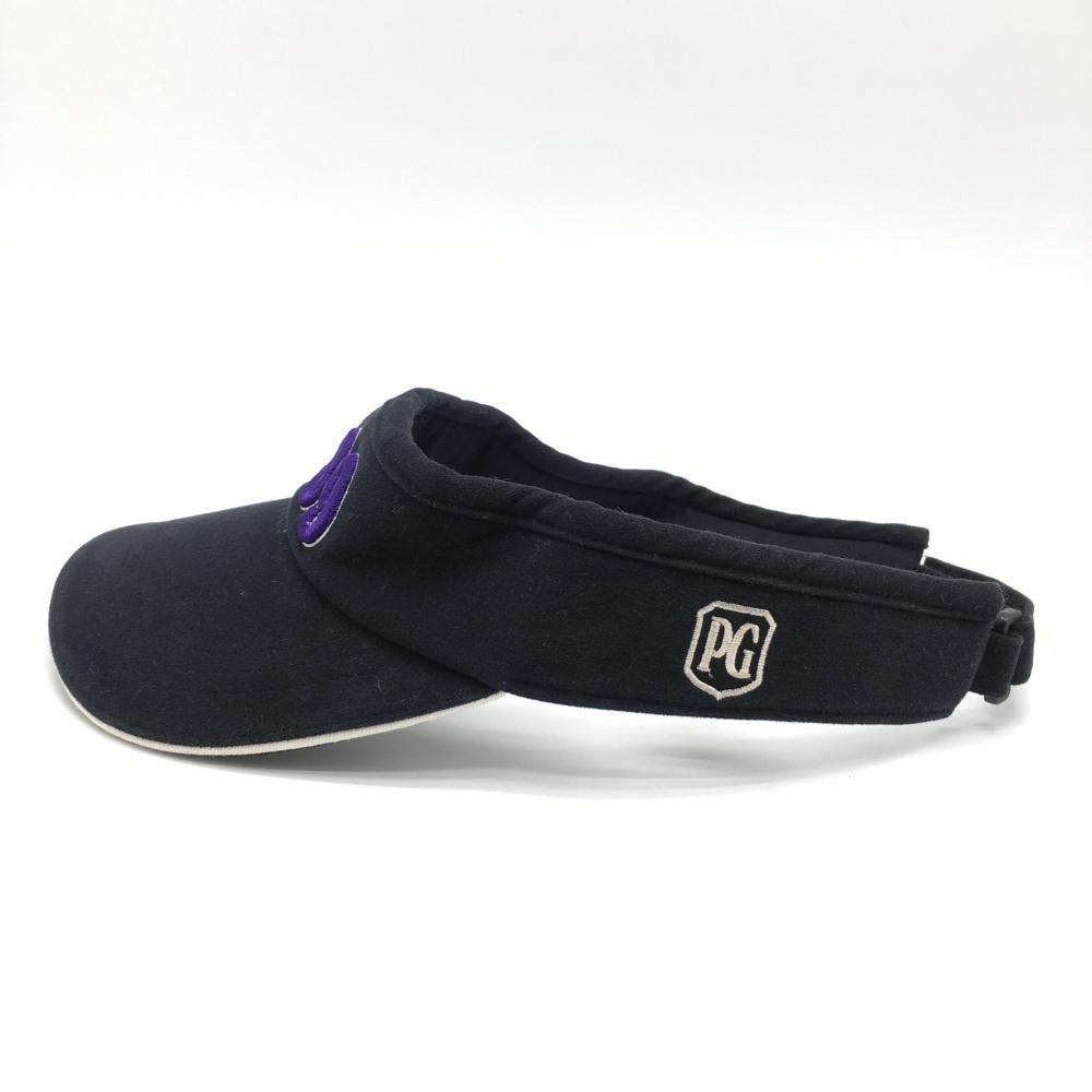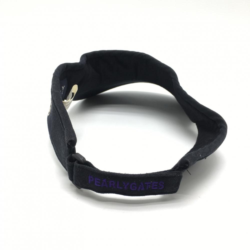【美品】パーリーゲイツ サンバイザー 黒×パープル 微起毛 立体ロゴ刺しゅう ゴルフウェア PEARLY GATES