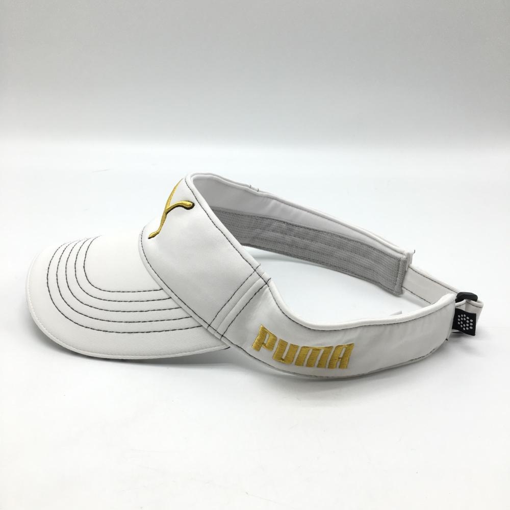 【美品】プーマ サンバイザー 白×ゴールド 立体ロゴ刺しゅう OneSizeFitsAll(56~59cm) ゴルフウェア PUMA