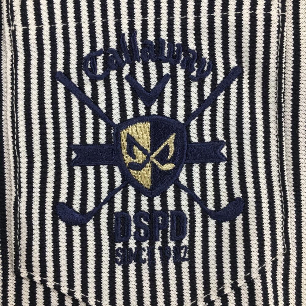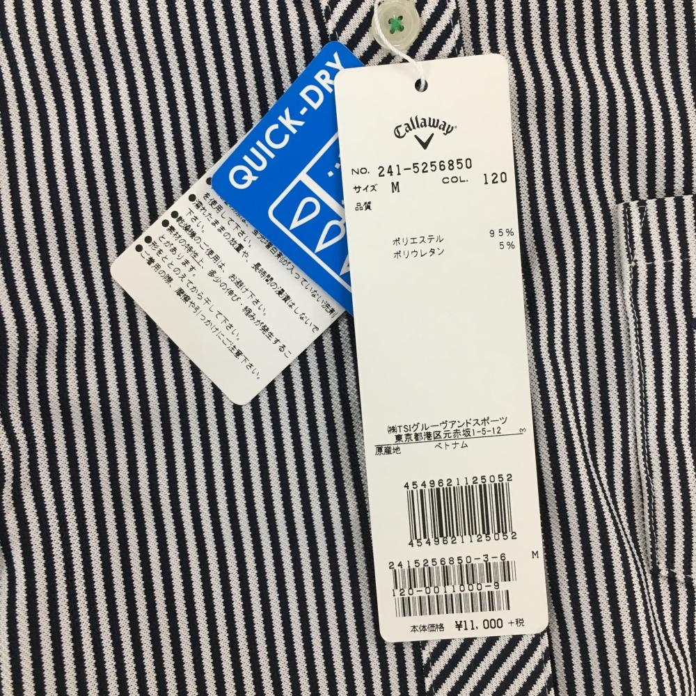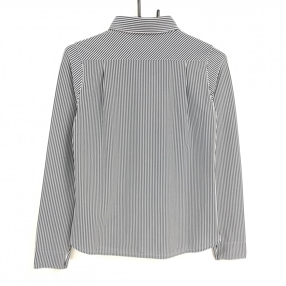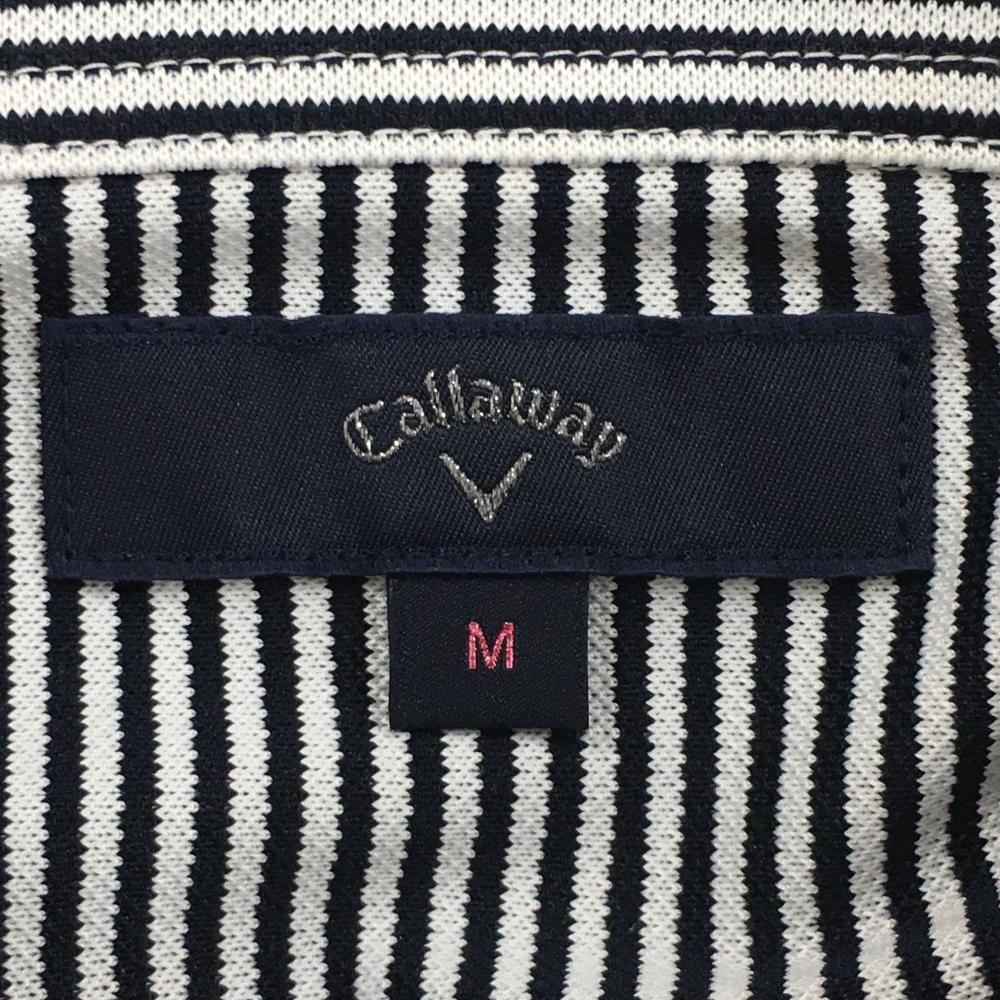 【新品】キャロウェイ 長袖ポロシャツ 黒×白 ストライプ ボタンダウン 胸ポケット レディース M ゴルフウェア Callaway
