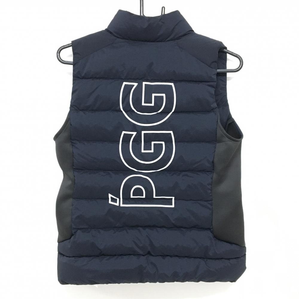 【新品】PGGパーリーゲイツ 中綿ベスト ネイビー×白 背面ロゴ レディース 1(M) ゴルフウェア PEARLY GATES