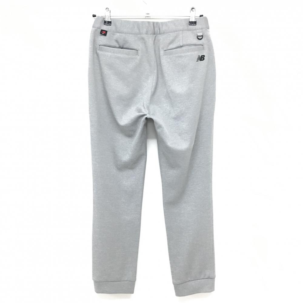【美品】ニューバランスゴルフ ジョガーパンツ 杢グレー サイドロゴ黒 ウエスト一部ゴム レディース 2(L) ゴルフウェア New Balance