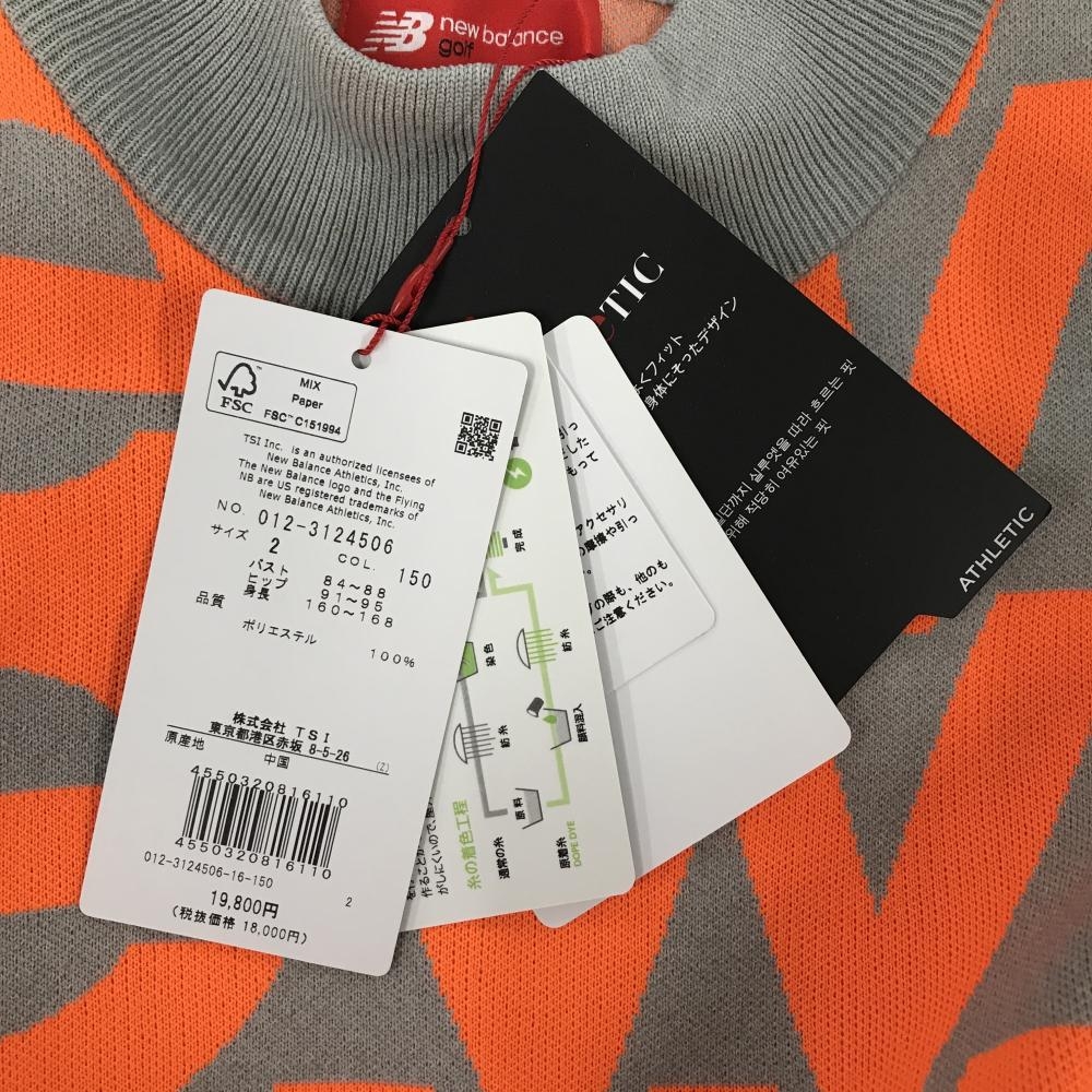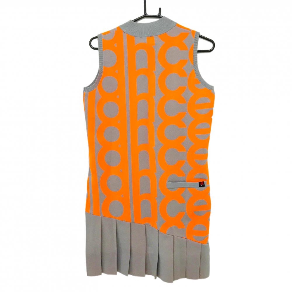 【新品】ニューバランスゴルフノースリーブニットワンピースグレー×蛍光オレンジ レディース 2(L) ゴルフウェア 2023年モデル New Balance