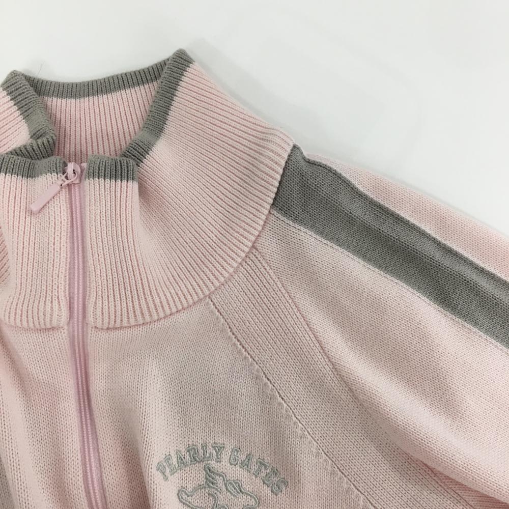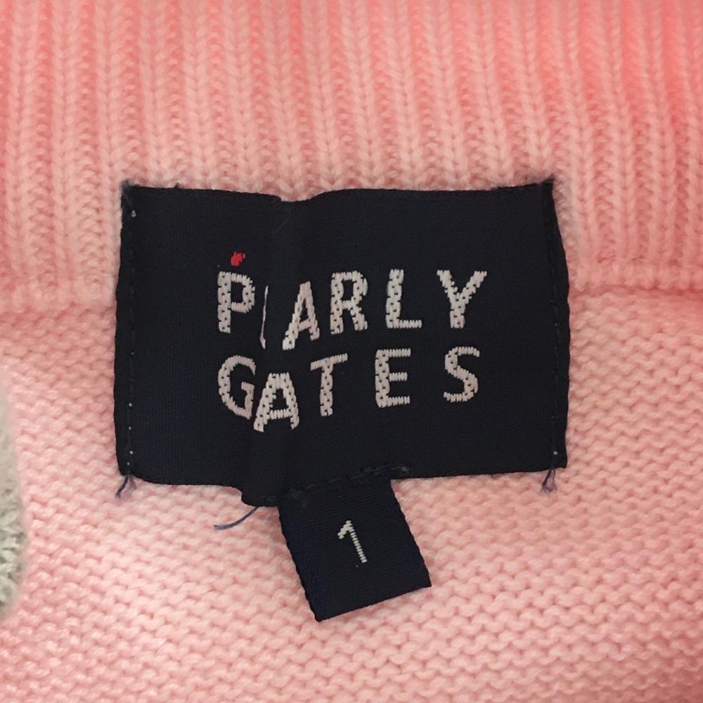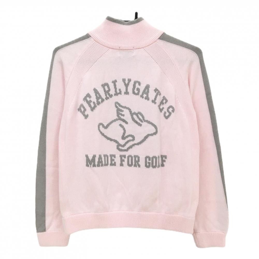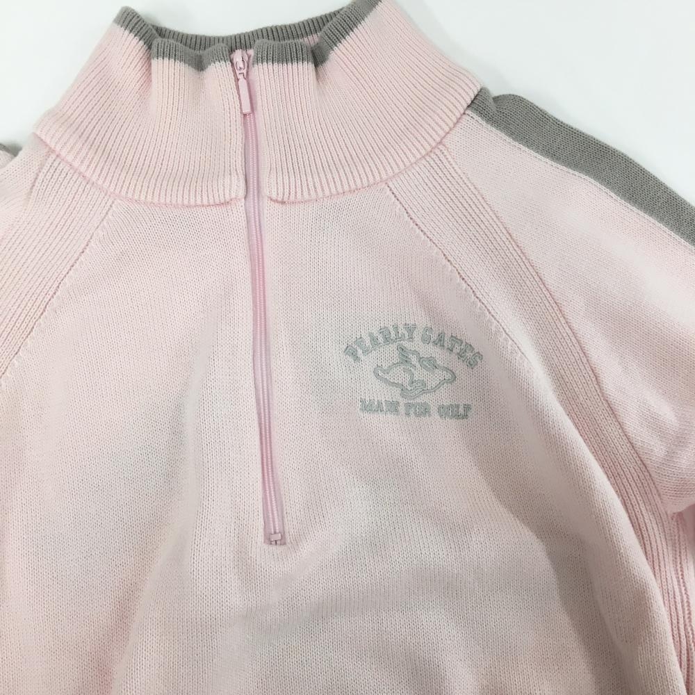パーリーゲイツ ハイネックセーター ライトピンク×グレー ハーフジップ 後ろロゴ ニット レディース 1(M) ゴルフウェア PEARLY GATES