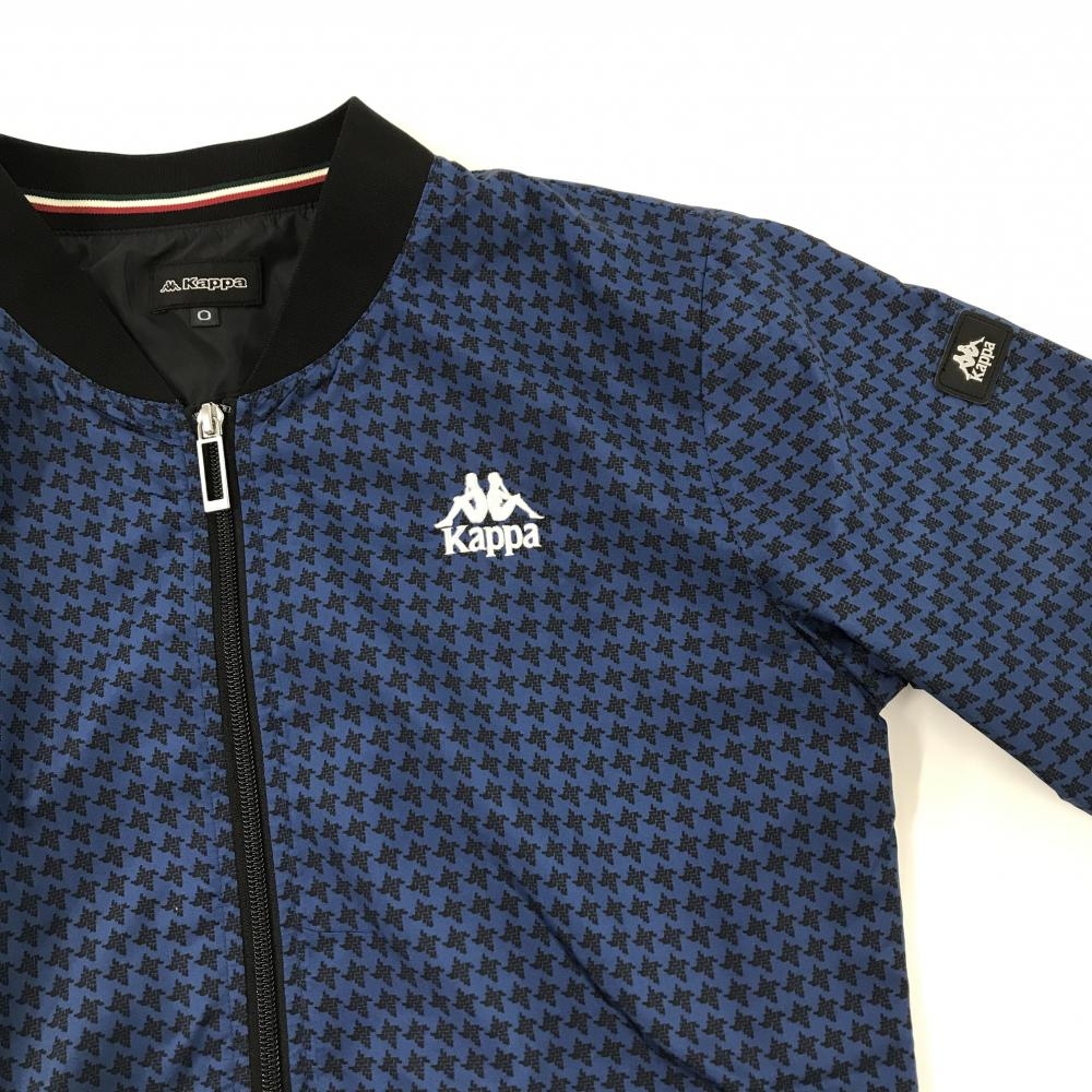 【超美品】カッパ ジャケット ブルー×黒 総柄 ロゴ白 ダブルジップ メンズ O ゴルフウェア Kappa