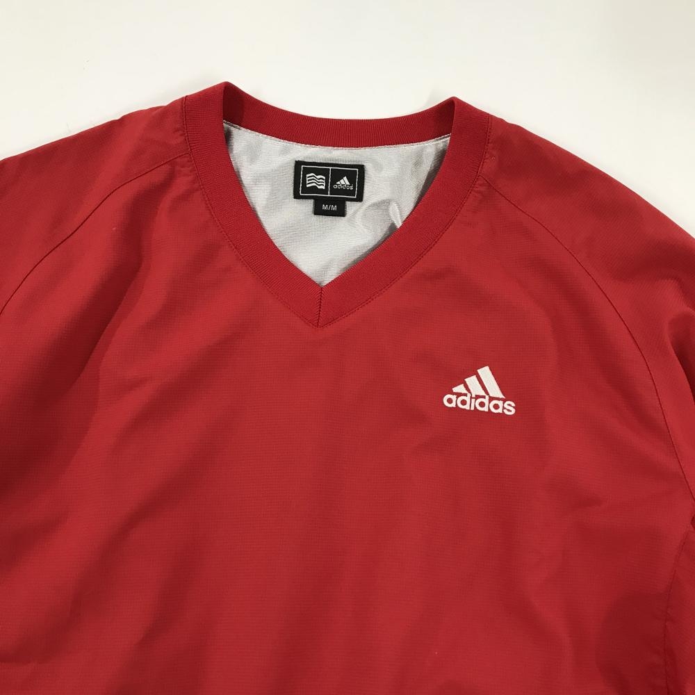 【美品】アディダス 2WAYスニード レッド 地模様 ロゴ白 袖着脱可 裏地付 ブルゾン メンズ M/M ゴルフウェア adidas