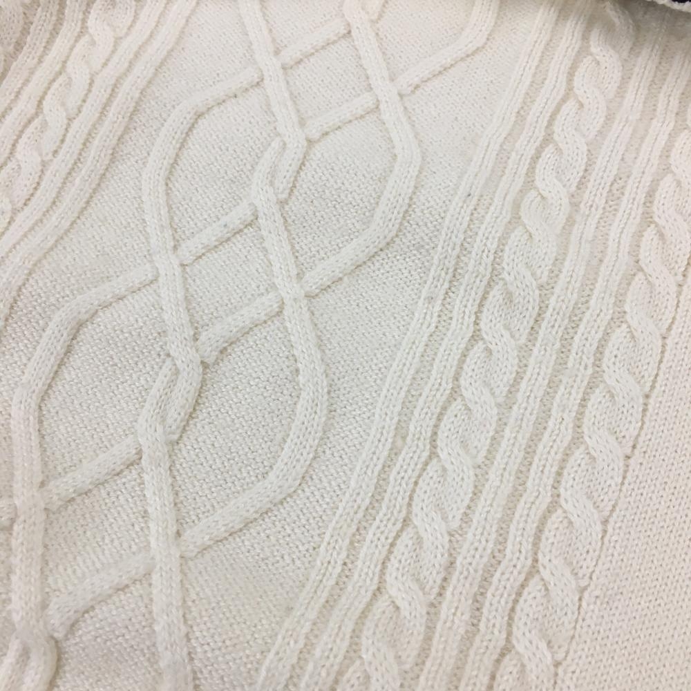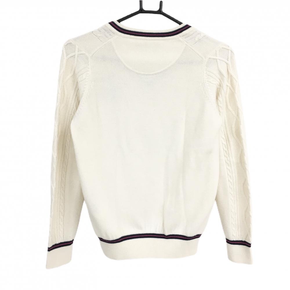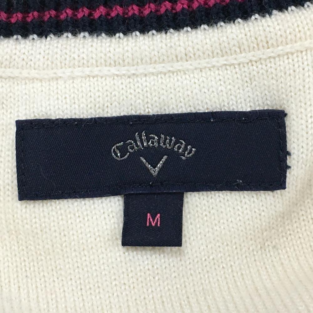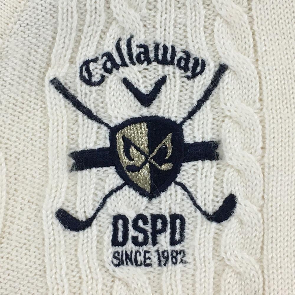 【美品】キャロウェイ セーター 白 ケーブル編み ロゴネイビー Vネック ニット レディース M ゴルフウェア Callaway