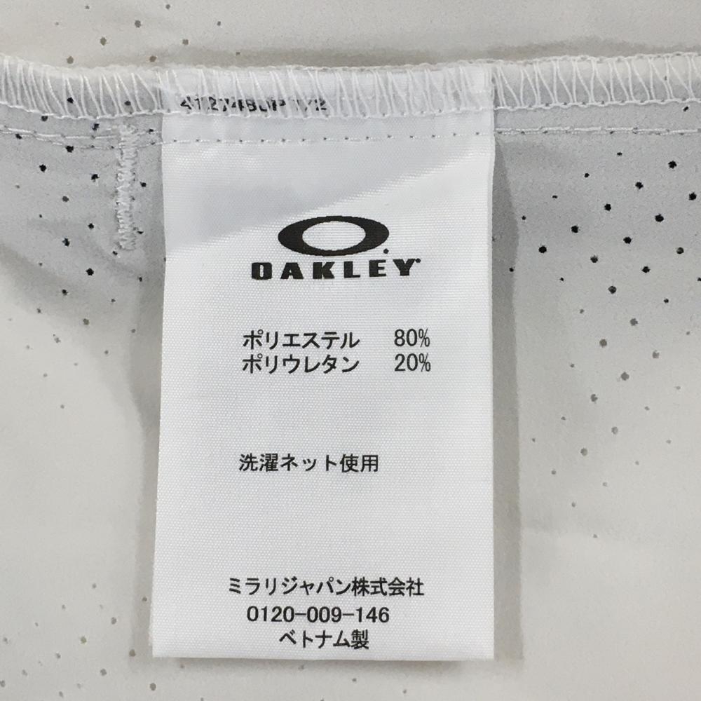 オークリー ジャケット 白 一部メッシュ調 ロゴグレー 裾ドローコード メンズ L ゴルフウェア Oakley