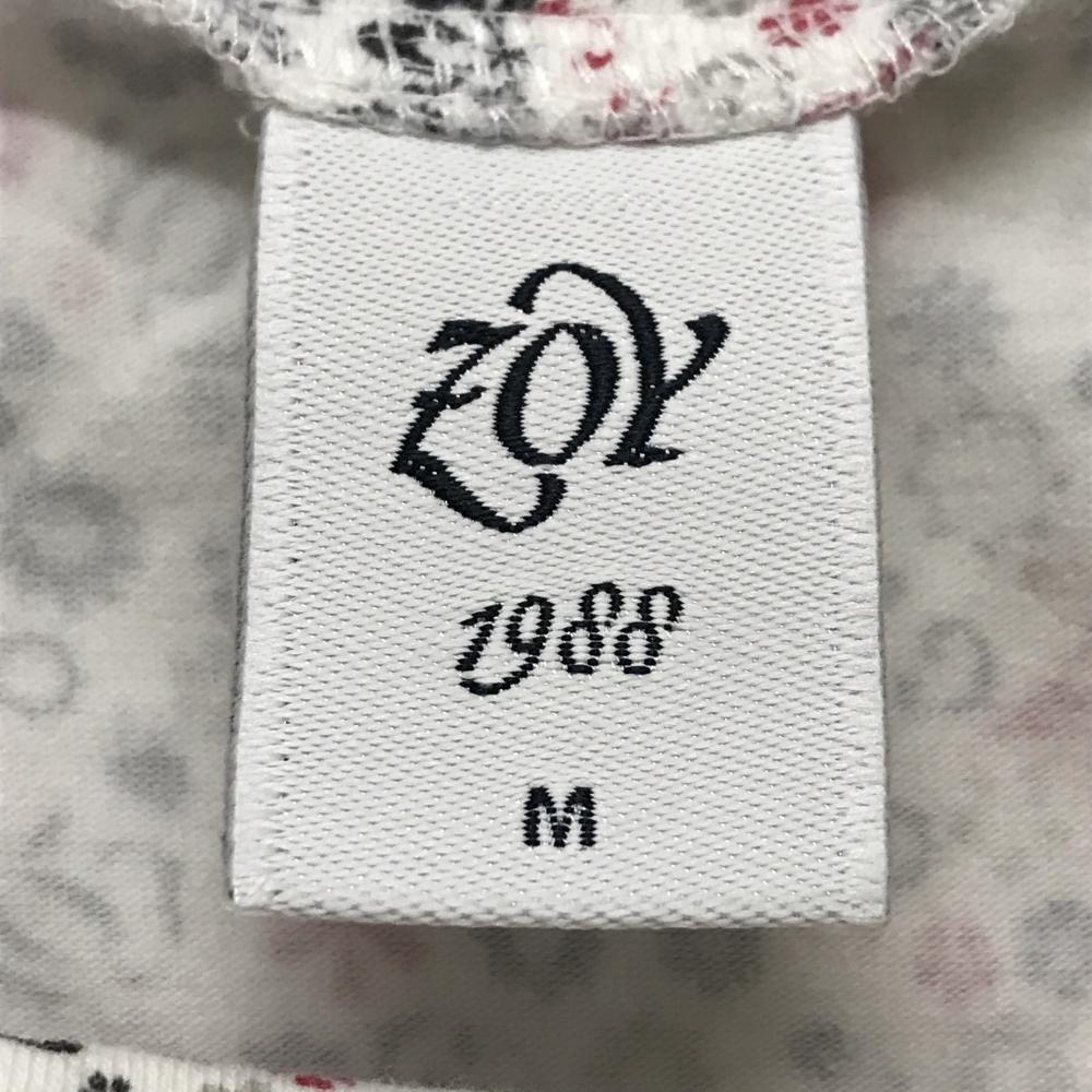 ゾーイ 長袖ハイネックシャツ 白×ピンク×ネイビー 総柄 胸ロゴ レディース M ゴルフウェア ZOY