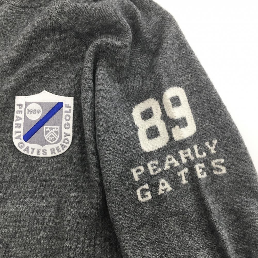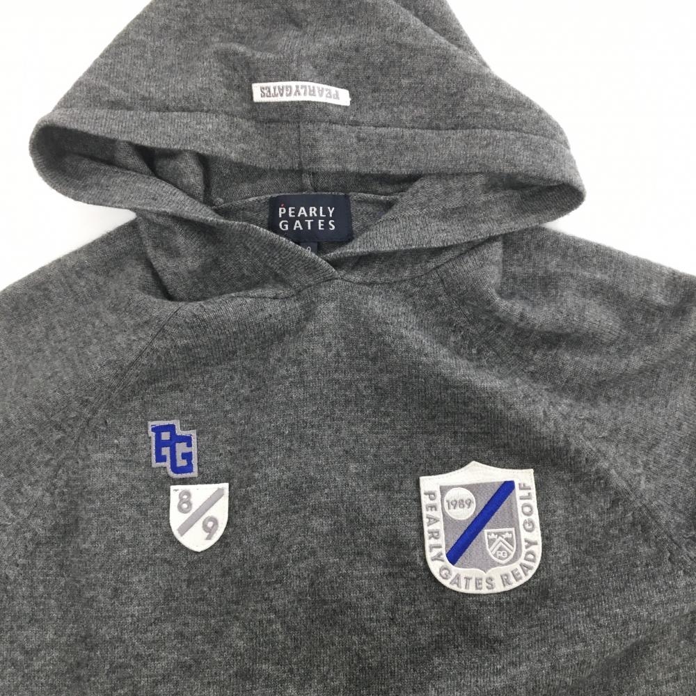【超美品】パーリーゲイツ フード付セーター グレー 複数ワッペン カシミヤ混 ニット レディース 0(S) ゴルフウェア PEARLY GATES