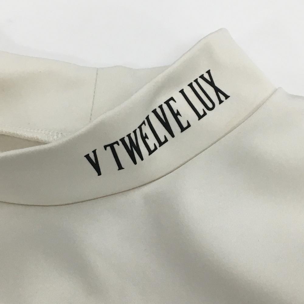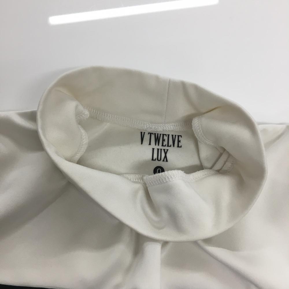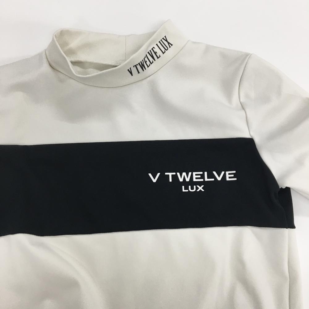 【美品】V12 LUX 長袖ハイネックシャツ 白系×黒 裏微起毛 ロゴプリント レディース 0(S) ゴルフウェア V12