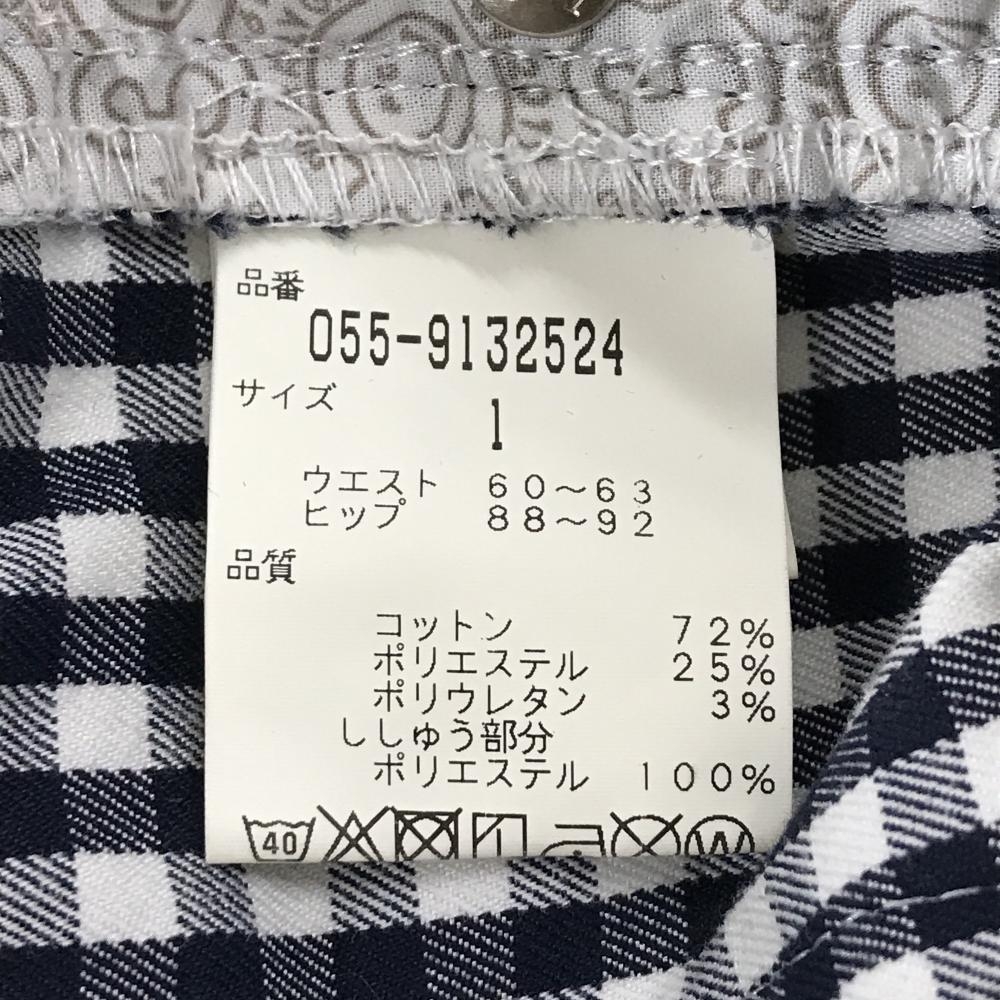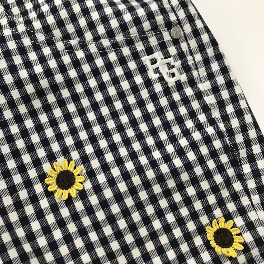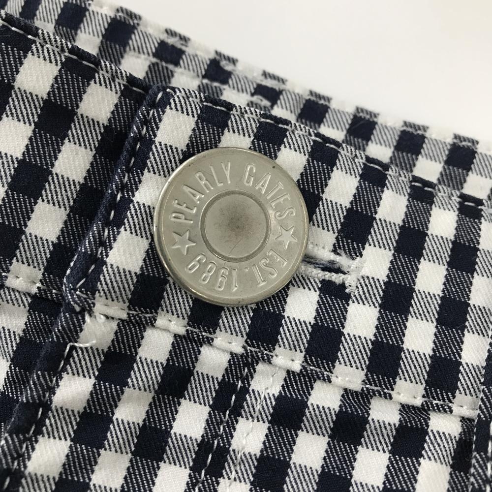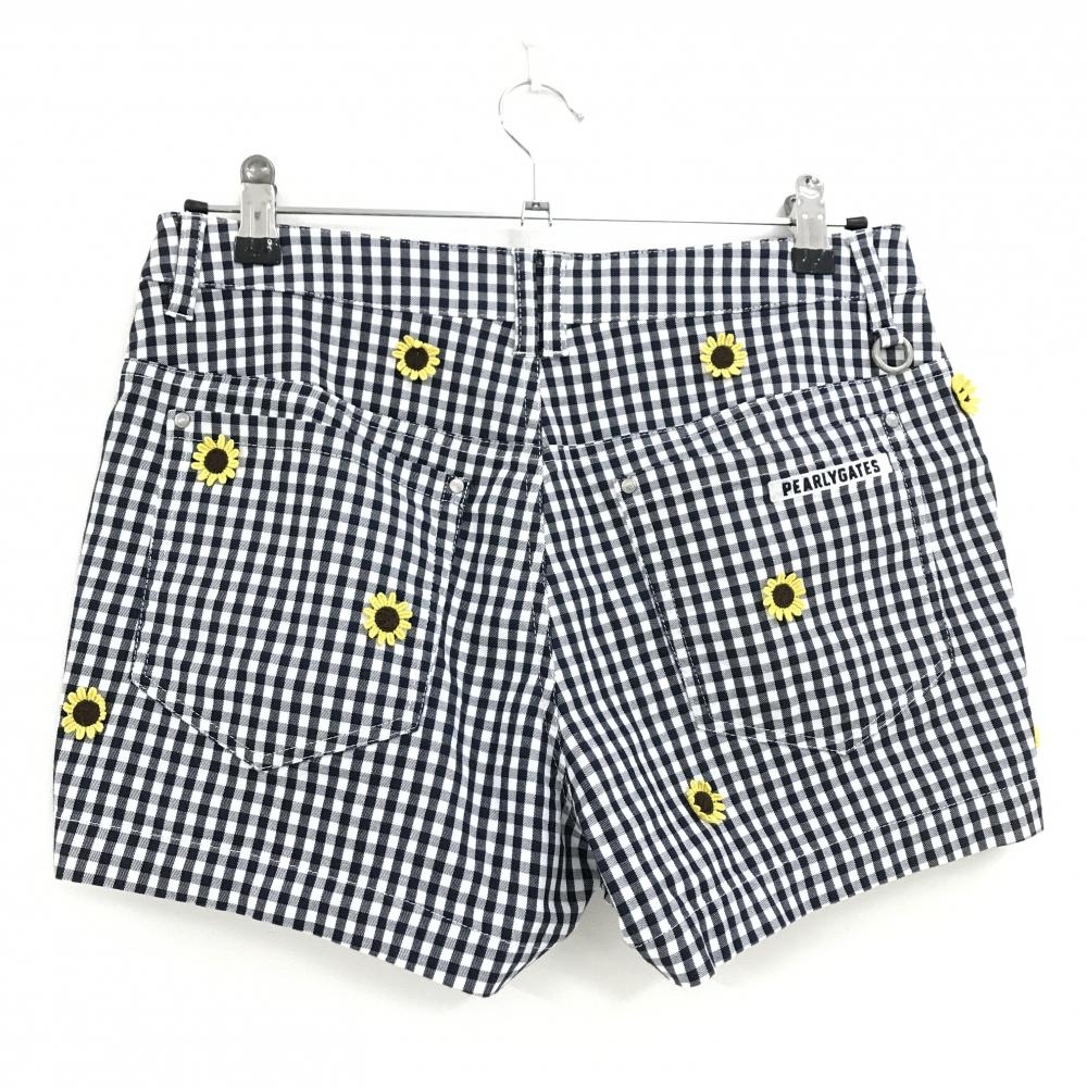 【美品】パーリーゲイツ ショートパンツ ネイビー×白 チェック ひまわり 内側30周年 レディース 1(M) ゴルフウェア PEARLY GATES