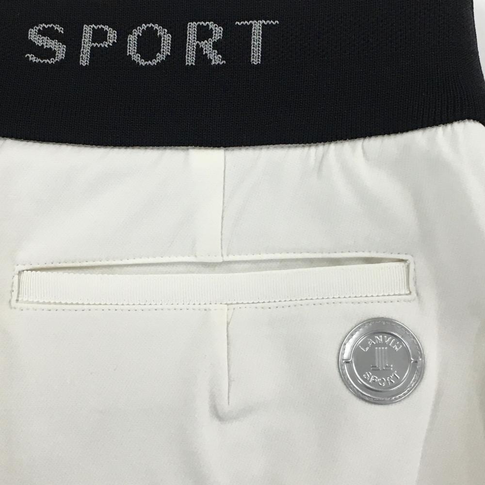 【超美品】ランバンスポール ショートパンツ 白×黒 ウエストゴム ジップポケット レディース 38(M) ゴルフウェア LANVIN SPORT