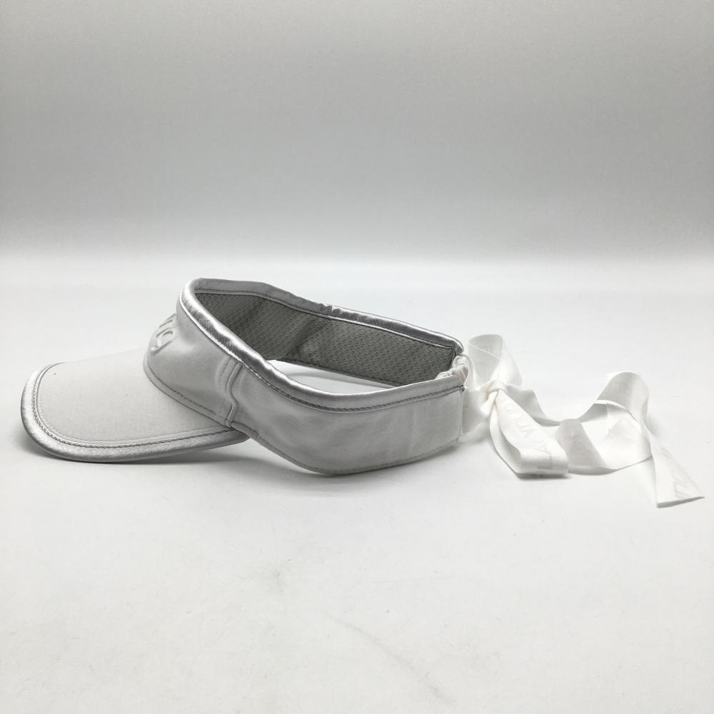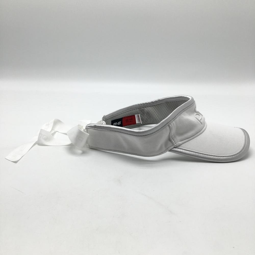 【美品】ピン サンバイザー 白 立体ロゴ リボン取外し可 レディース ONE SIZE FITS ALL ゴルフウェア PING