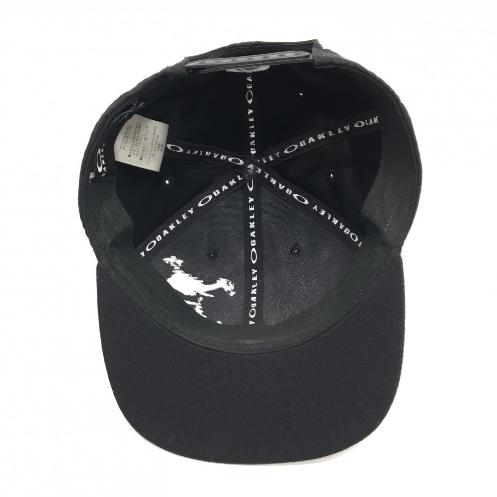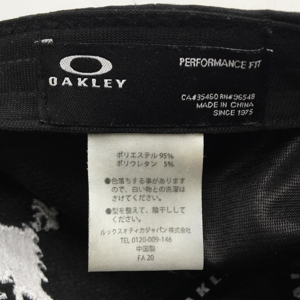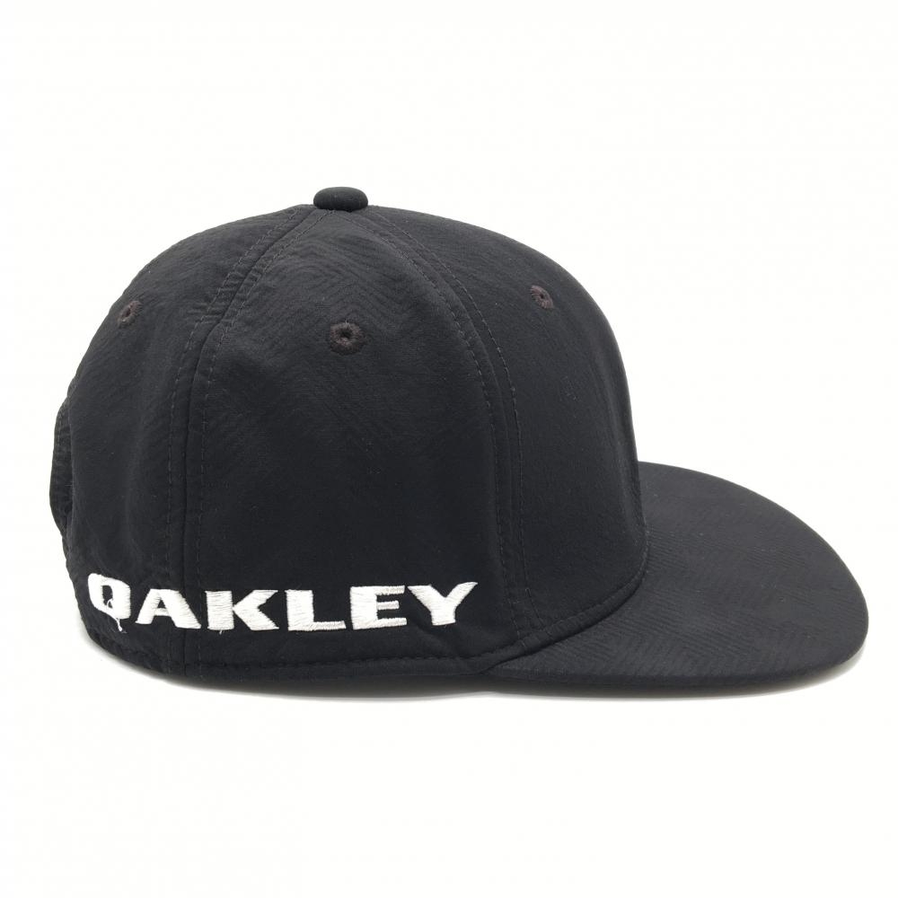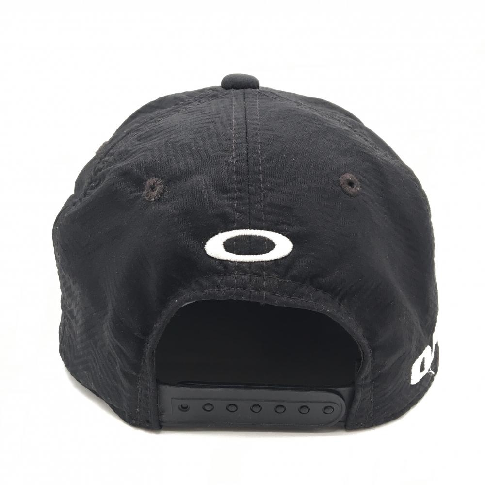 【美品】オークリー フラットキャップ 黒×白 地模様 ビッグロゴ ゴルフウェア Oakley