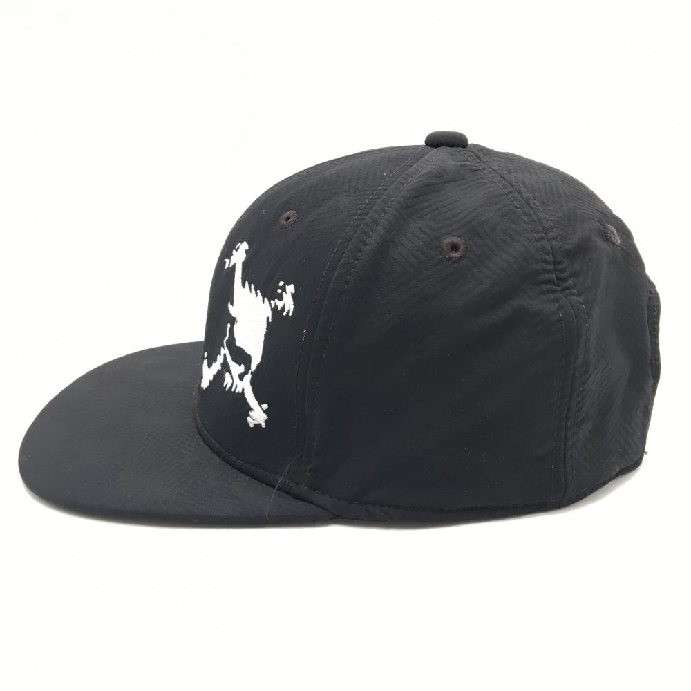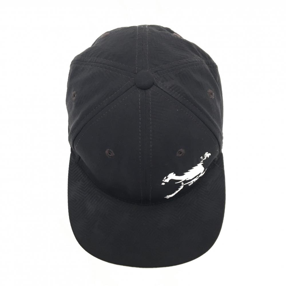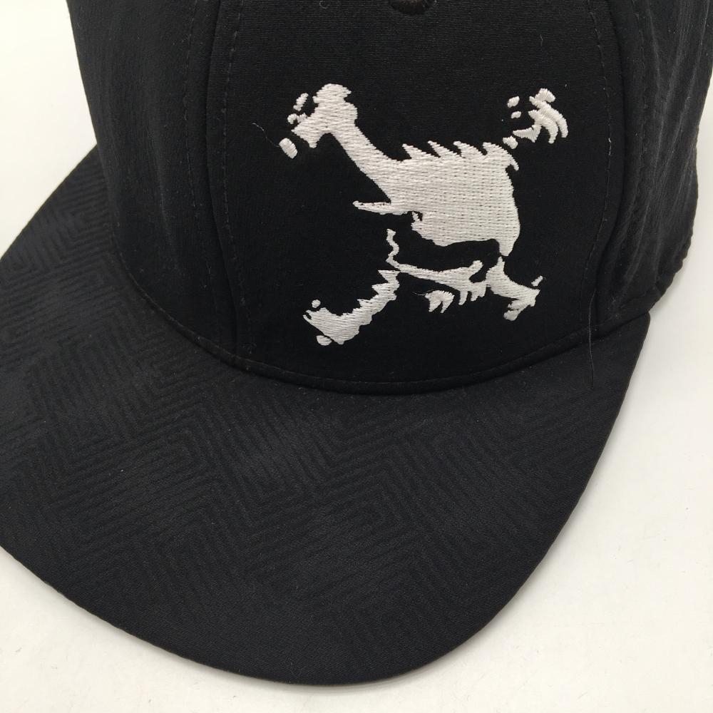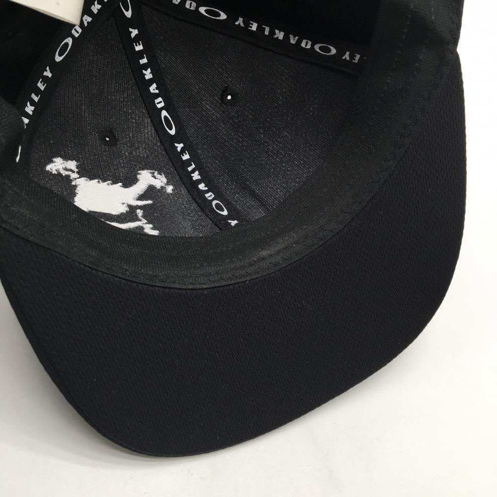 【美品】オークリー フラットキャップ 黒×白 地模様 ビッグロゴ ゴルフウェア Oakley