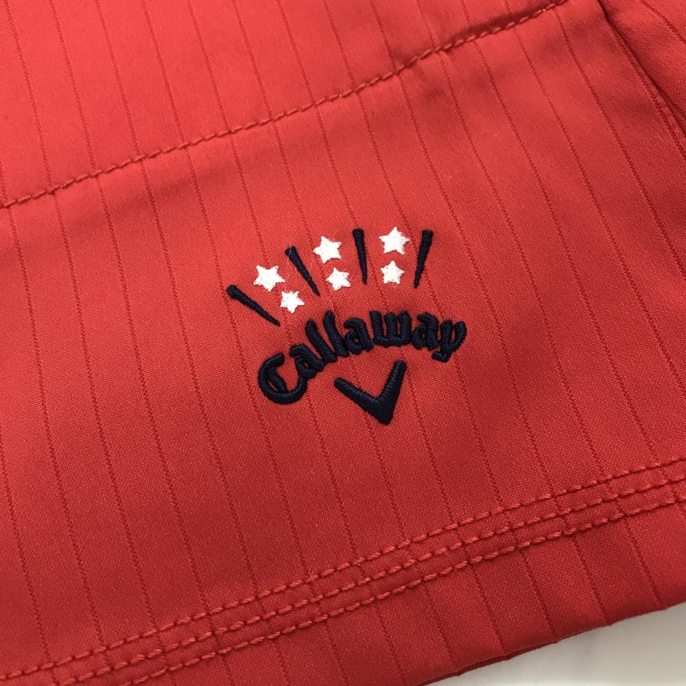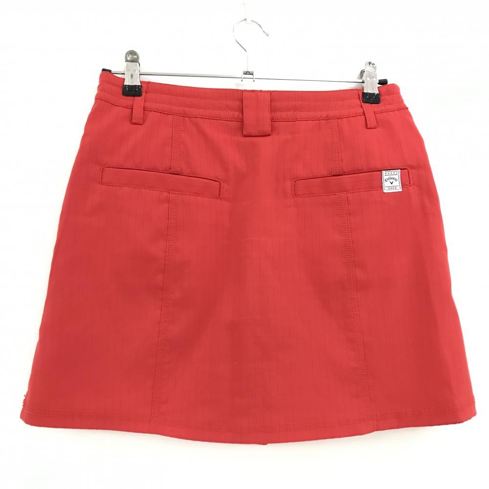 【美品】キャロウェイ スカート レッド ストライプ地模様 ロゴ刺しゅう 内側パンツ レディース L ゴルフウェア Callaway