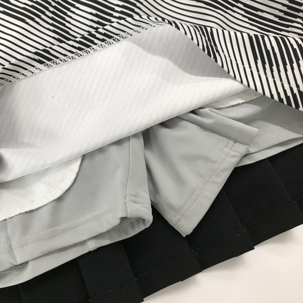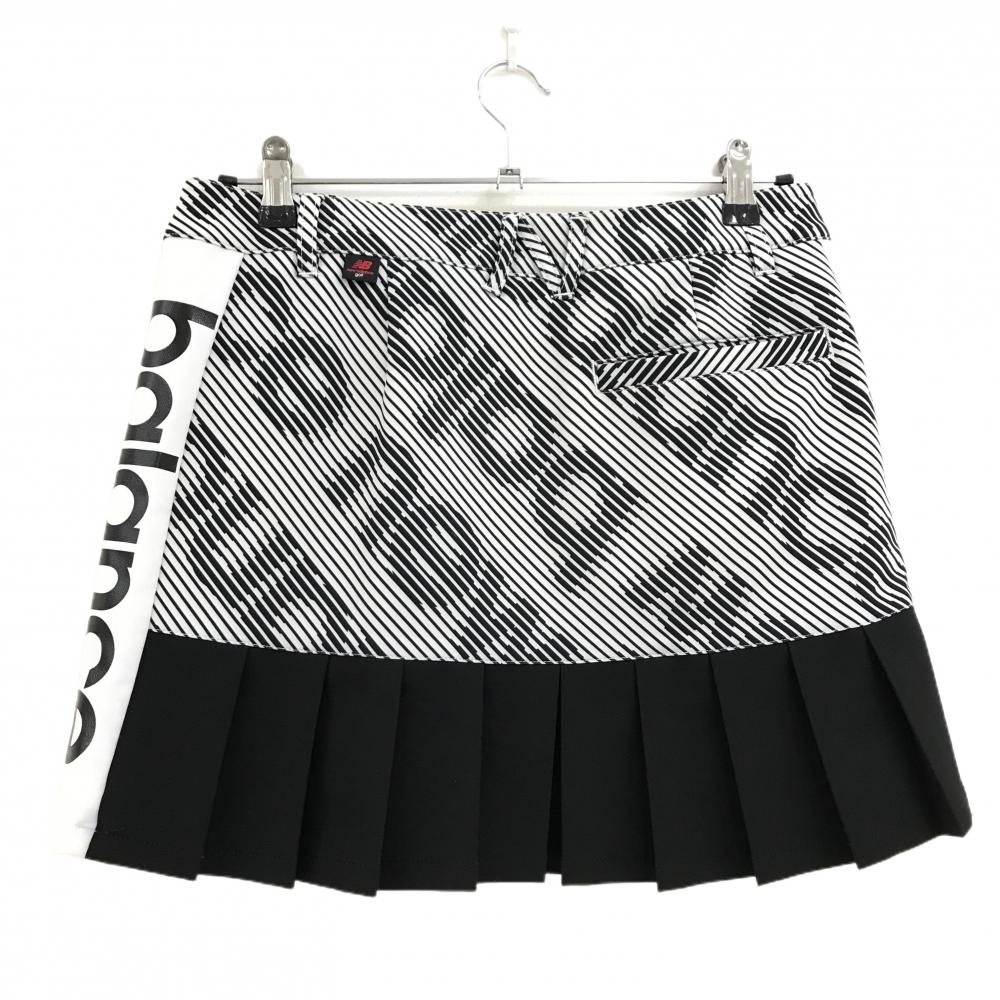 【美品】ニューバランスゴルフ スカート 白×黒 ロゴ斜めボーダー サイド切替 レディース 2(L) ゴルフウェア New Balance