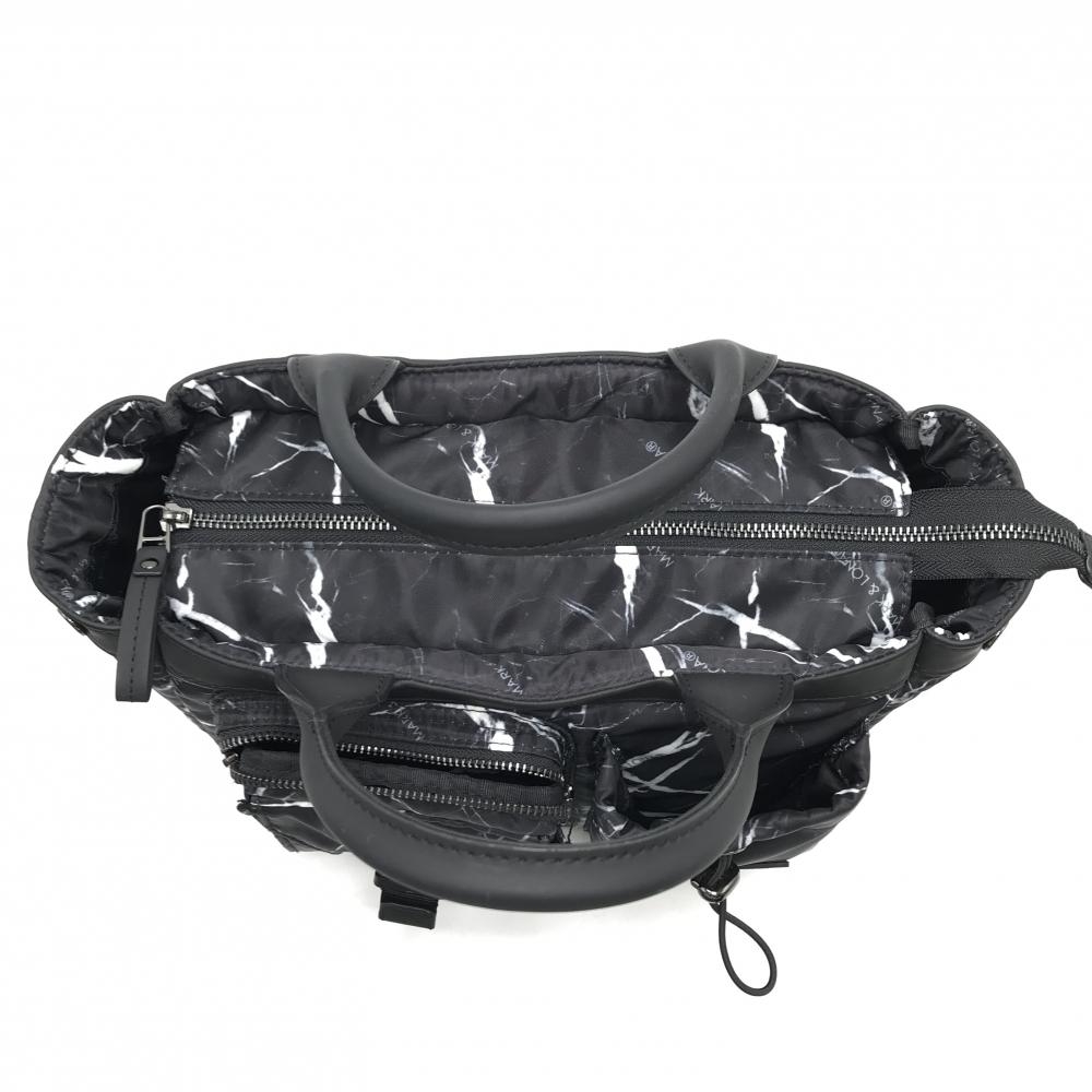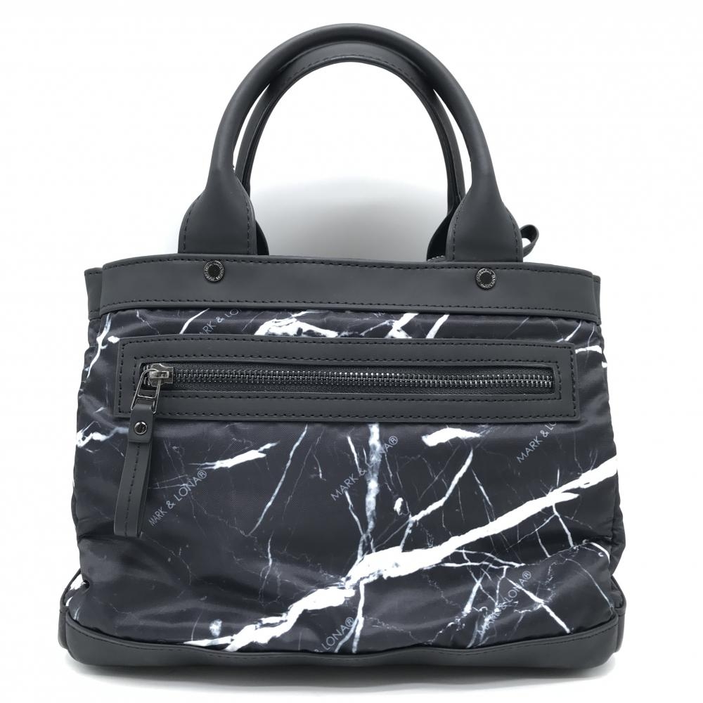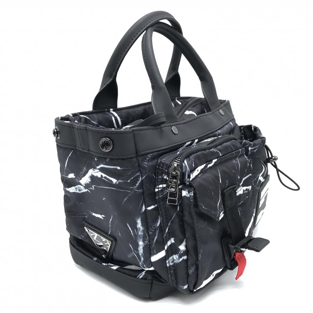 【美品】マークアンドロナ カートバッグ 黒×白 総柄 複数ポケットゴルフ MARK&LONA