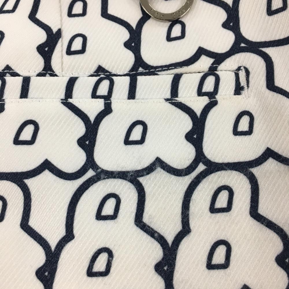 アンパスィ スカート 白×ネイビー ロゴ総柄 裾ワッペン レディース M ゴルフウェア and per se