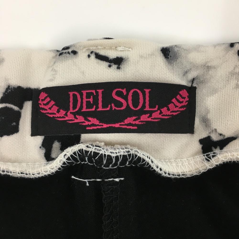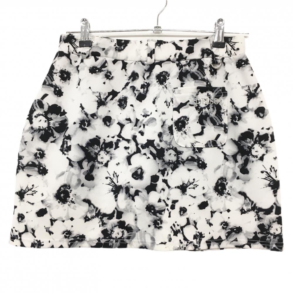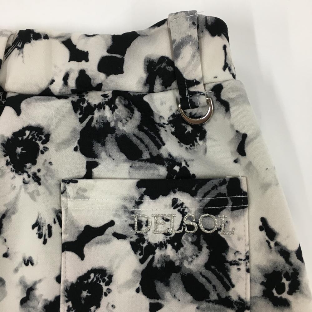 【美品】デルソル スカート 白×黒 花柄 ストレッチ 内側インナーパンツ レディース L ゴルフウェア DELSOL