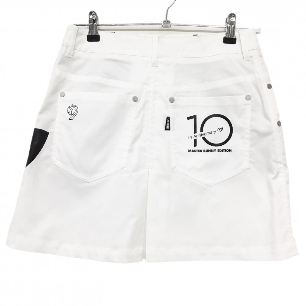 【美品】マスターバニー スカート 白×黒 10周年 ロゴプリント ストレッチ レディース 0(S) ゴルフウェア MASTER BUNNY EDITION