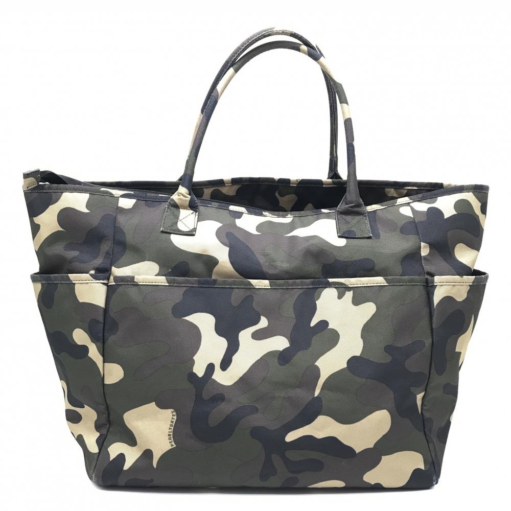 パーリーゲイツ ビッグトートバッグ カーキ×黒 カモフラ 迷彩 ニコちゃん スマイル ロッカーバッグ ゴルフ PEARLY GATES