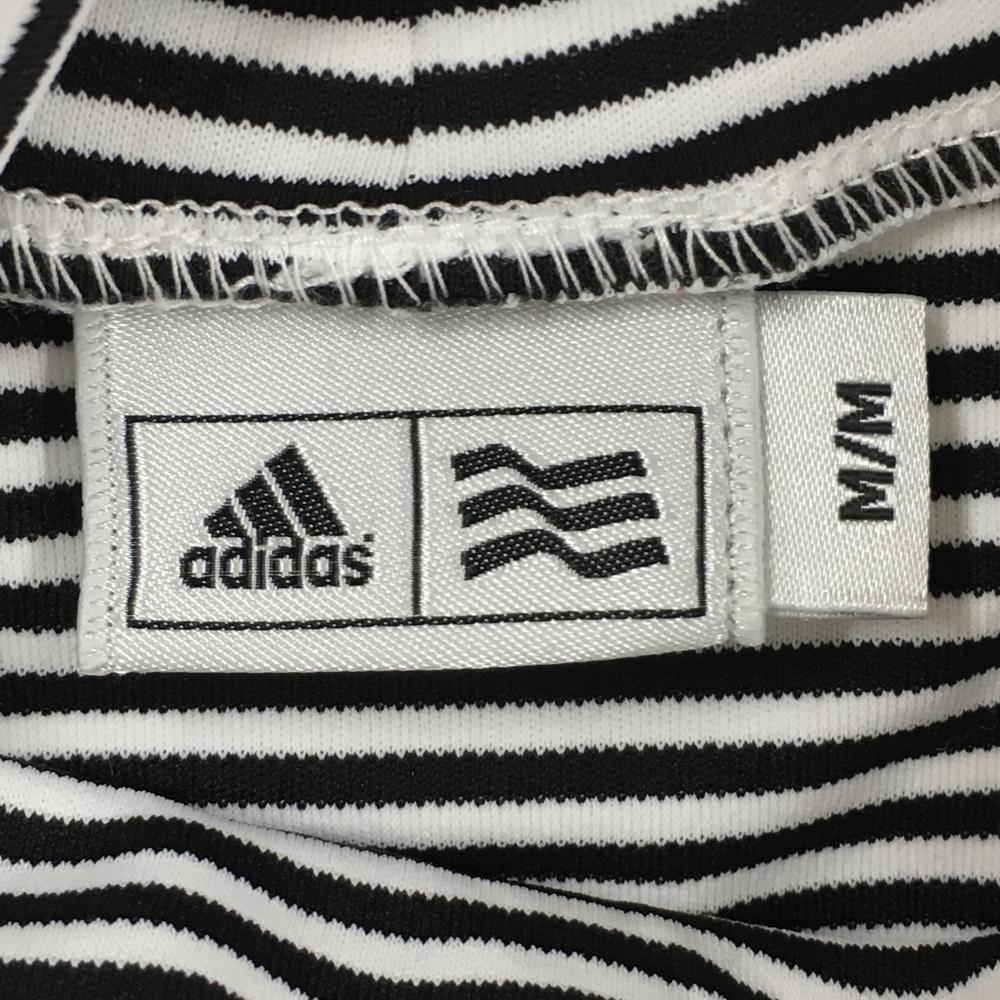 【超美品】アディダス 長袖タートルネックシャツ 白×黒 ボーダー レディース M/M ゴルフウェア adidas