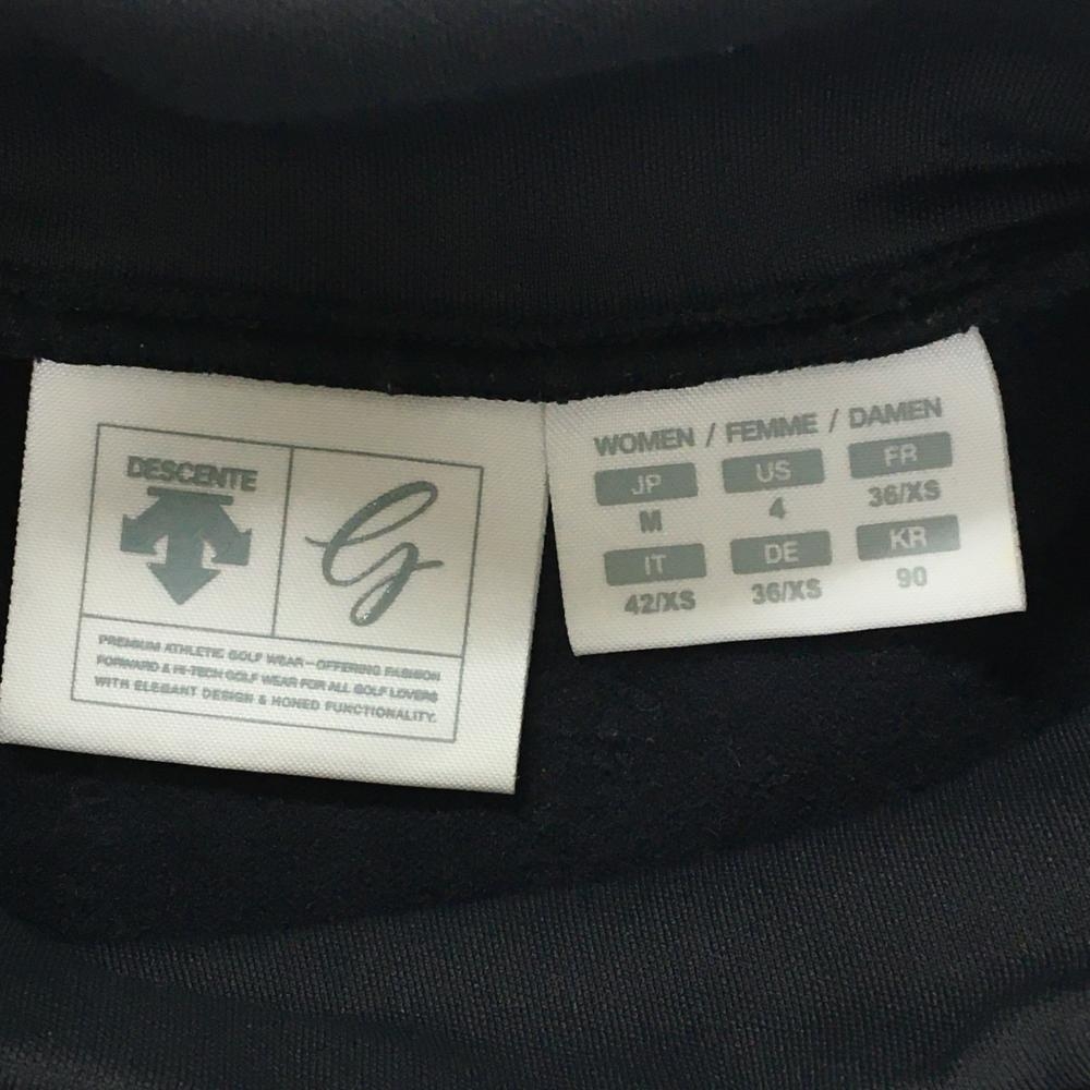 【超美品】デサントゴルフ ハイネックインナーシャツ 黒 裏微起毛 袖ロゴ レディース M ゴルフウェア DESCENTE