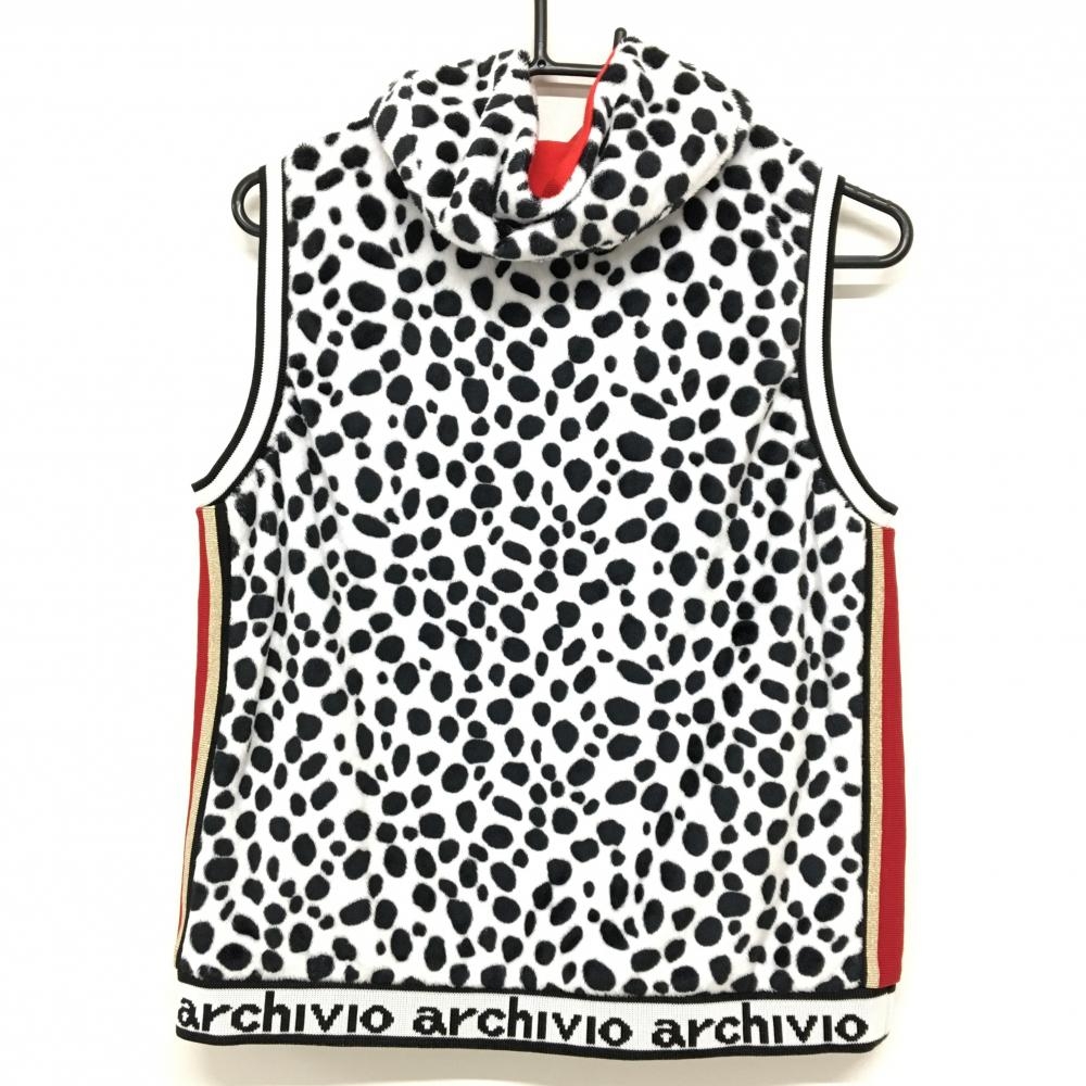 【超美品】アルチビオ ベスト 白×黒 ダルメシアン 起毛 パーカー風 レディース 40(L) ゴルフウェア archivio