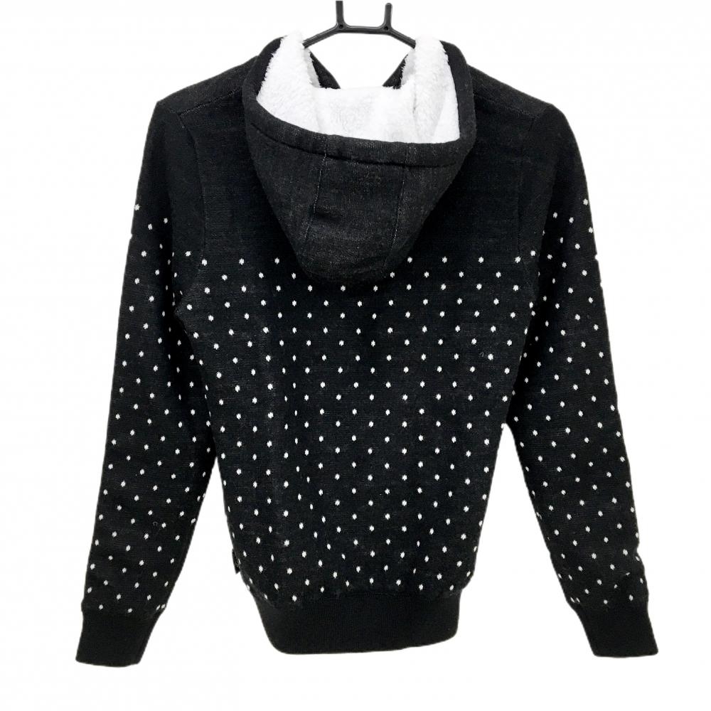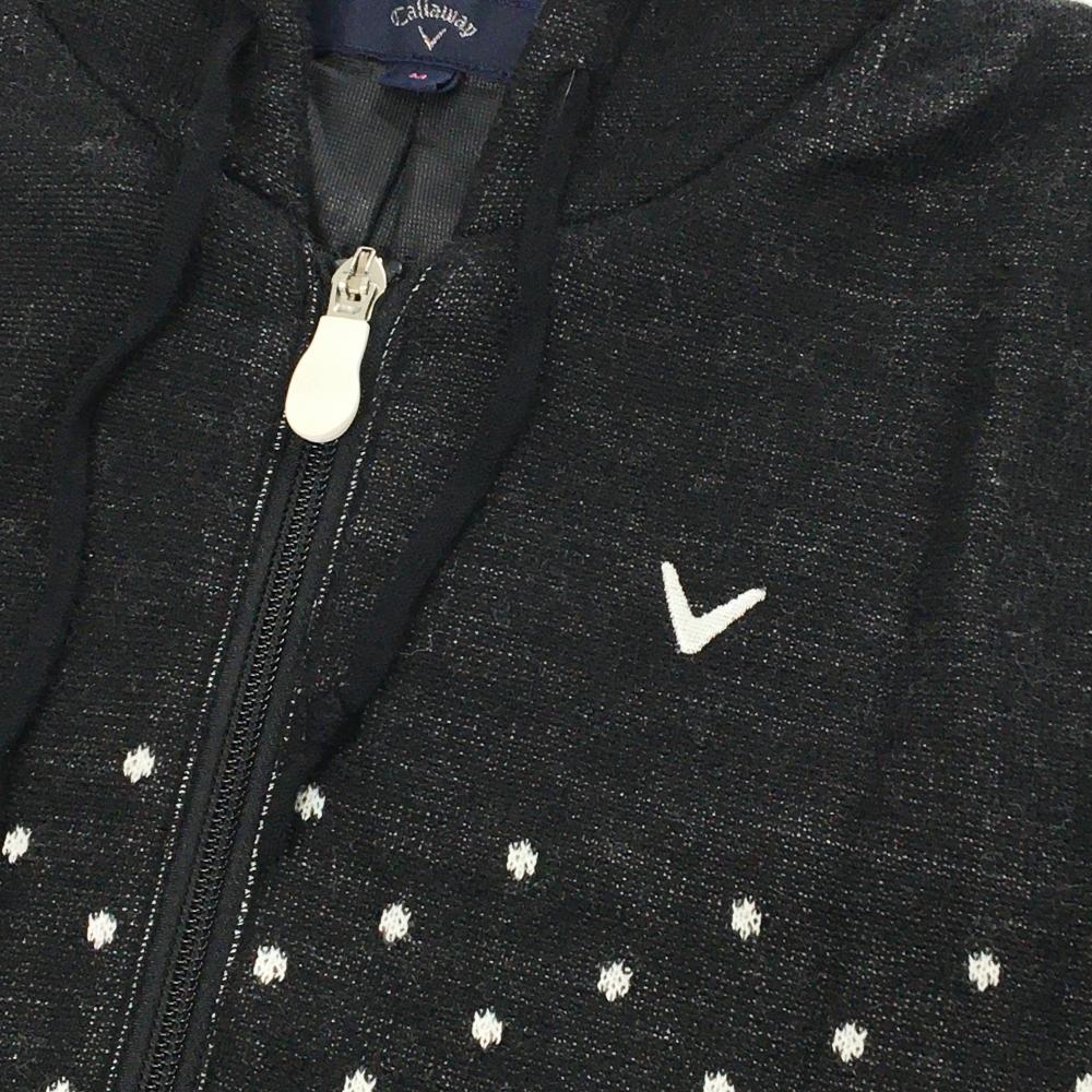 【美品】キャロウェイ ニットジップパーカー 黒×白 ドット柄 ウール混 ダブルジップ レディース M ゴルフウェア Callaway