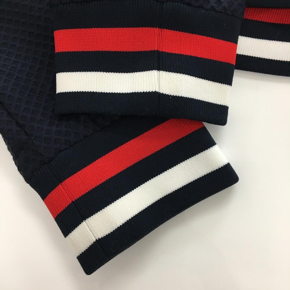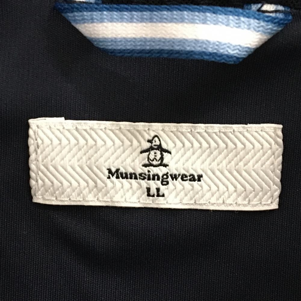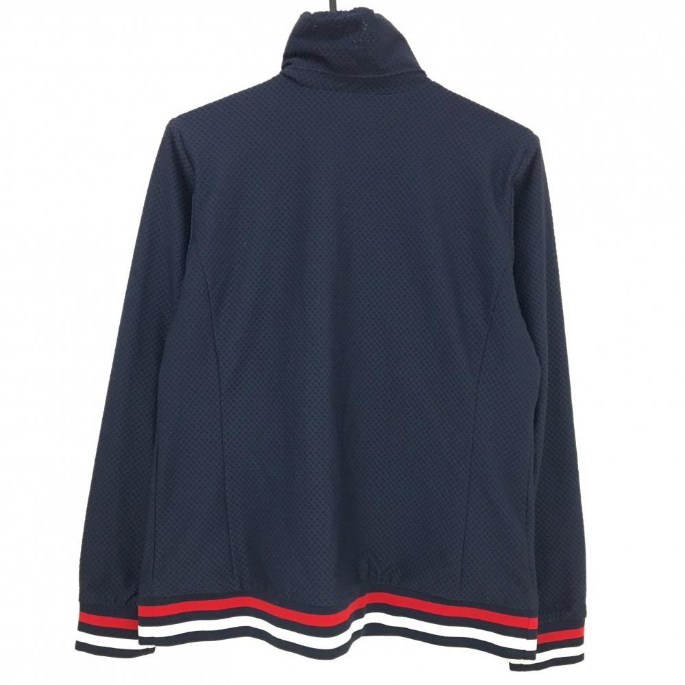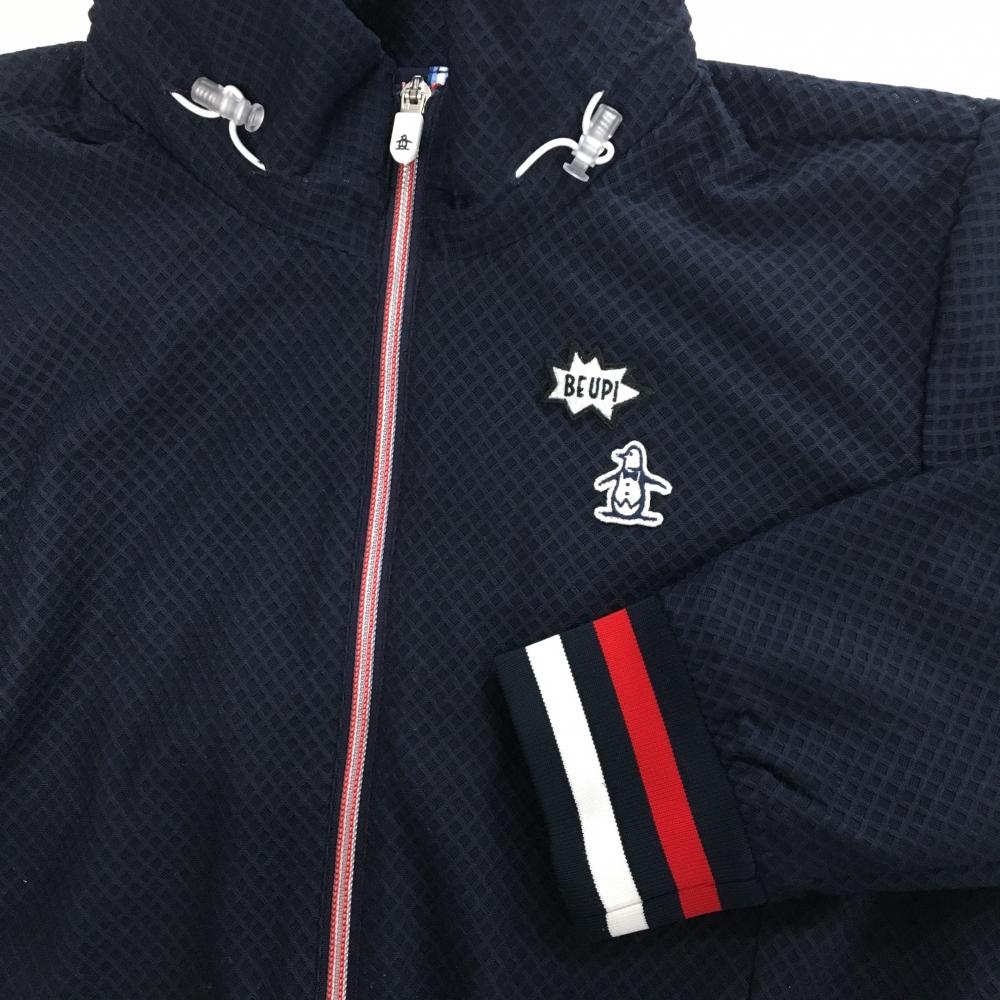 【美品】マンシングウェア ジャケットブルゾン ネイビー 織生地 リブトリコロール ワッペン レディース LL ゴルフウェア Munsingwear