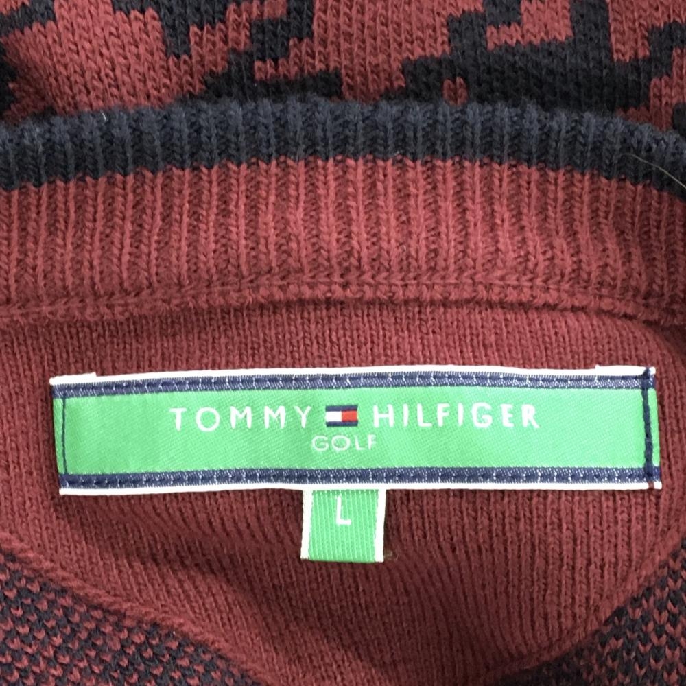 【超美品】トミーヒルフィガー セーター ボルドー×ネイビー 千鳥格子 ニット レディース L ゴルフウェア Tommy Hilfiger Golf