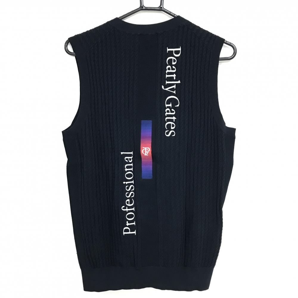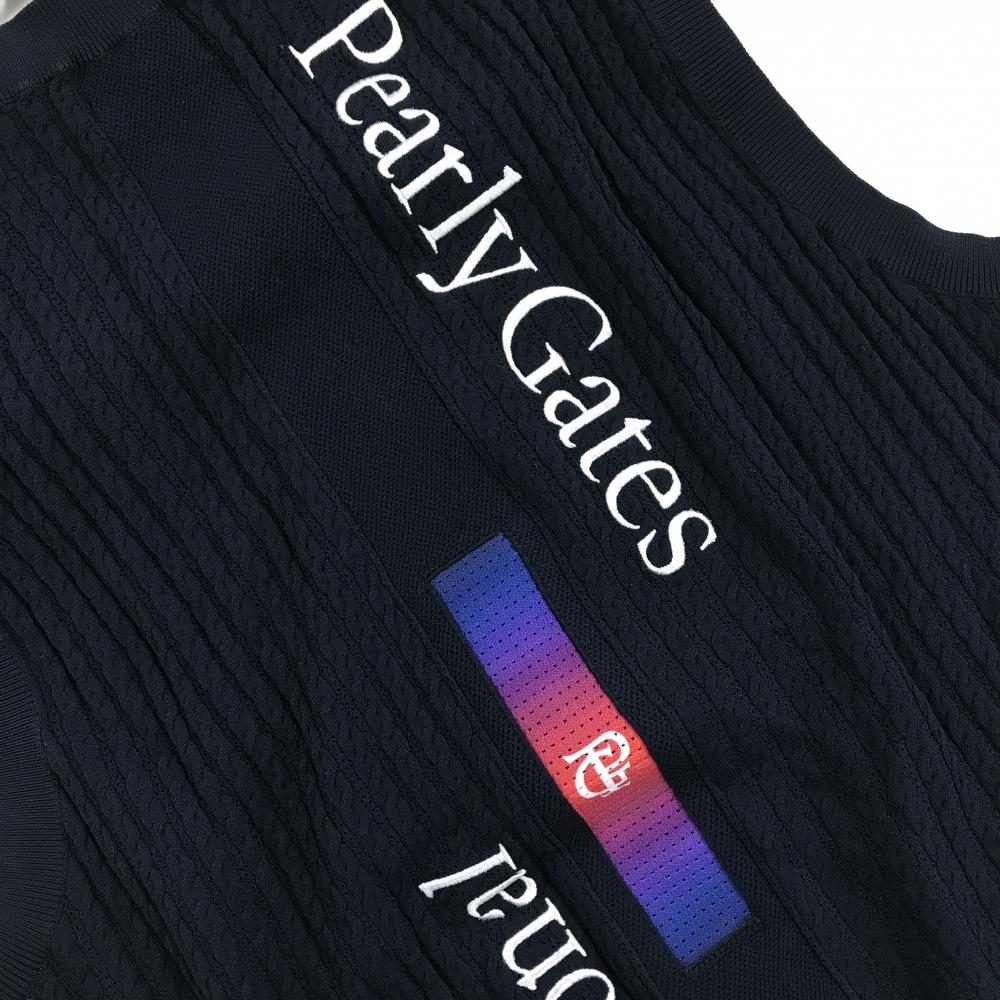 【超美品】パーリーゲイツ ニットベスト ネイビー ロゴ白 細ケーブル編み メンズ 4(M) ゴルフウェア 2024年モデル PEARLY GATES