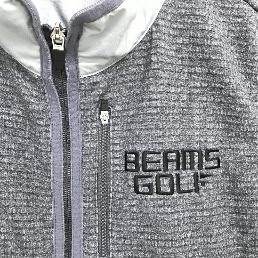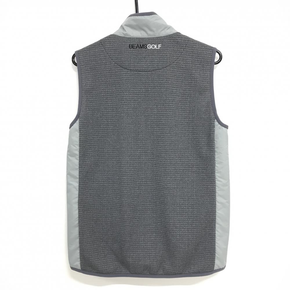 【超美品】ビームスゴルフ 切替アウターベスト グレー×ライトグレー ロゴ刺しゅう 裏起毛 メンズ M ゴルフウェア BEAMS GOLF