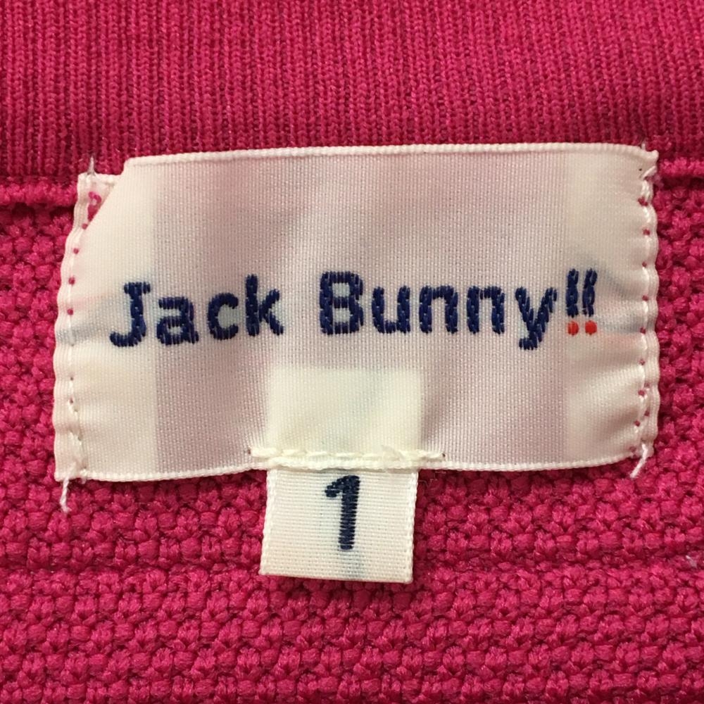 【美品】ジャックバニー セーター ピンク×白 ネックロゴ 袖星刺しゅう ポリエステル100% レディース 1(M) ゴルフウェア Jack Bunny