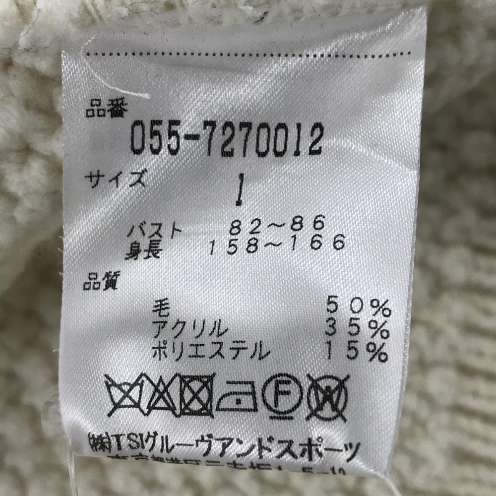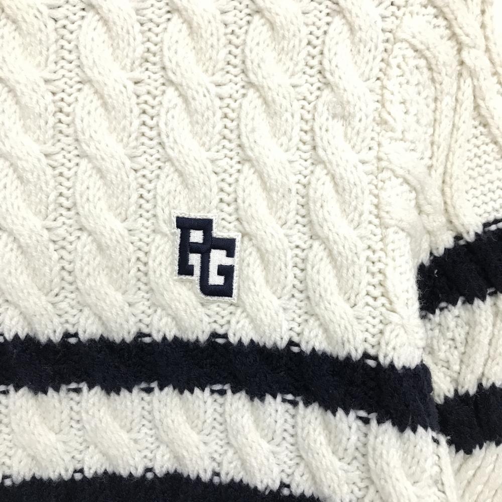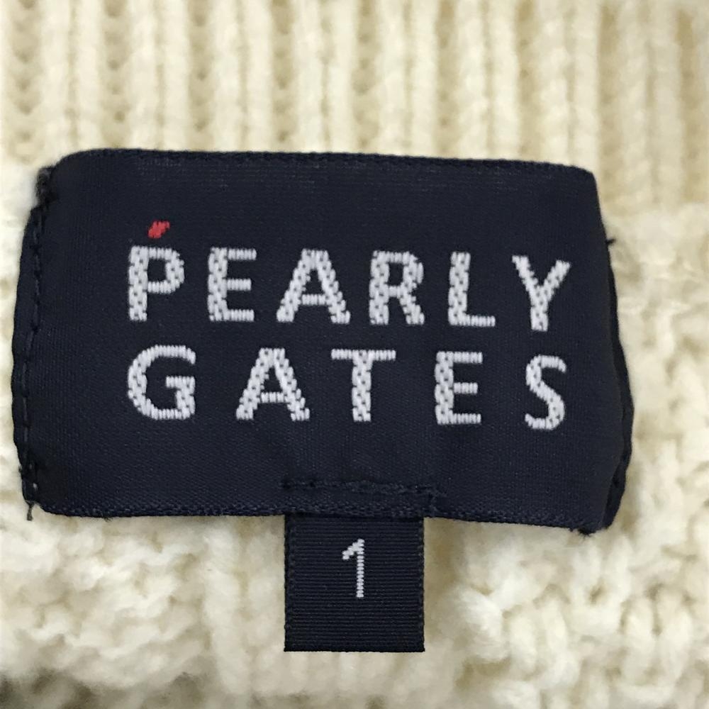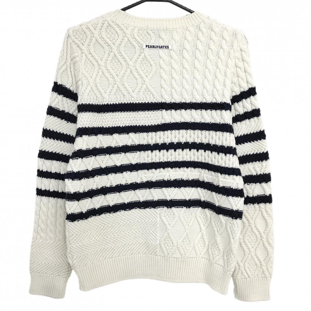 【美品】パーリーゲイツ セーター アイボリー系×ネイビー ニット 一部ケーブル編み ウール混 レディース 1(M) ゴルフウェア PEARLY GATES