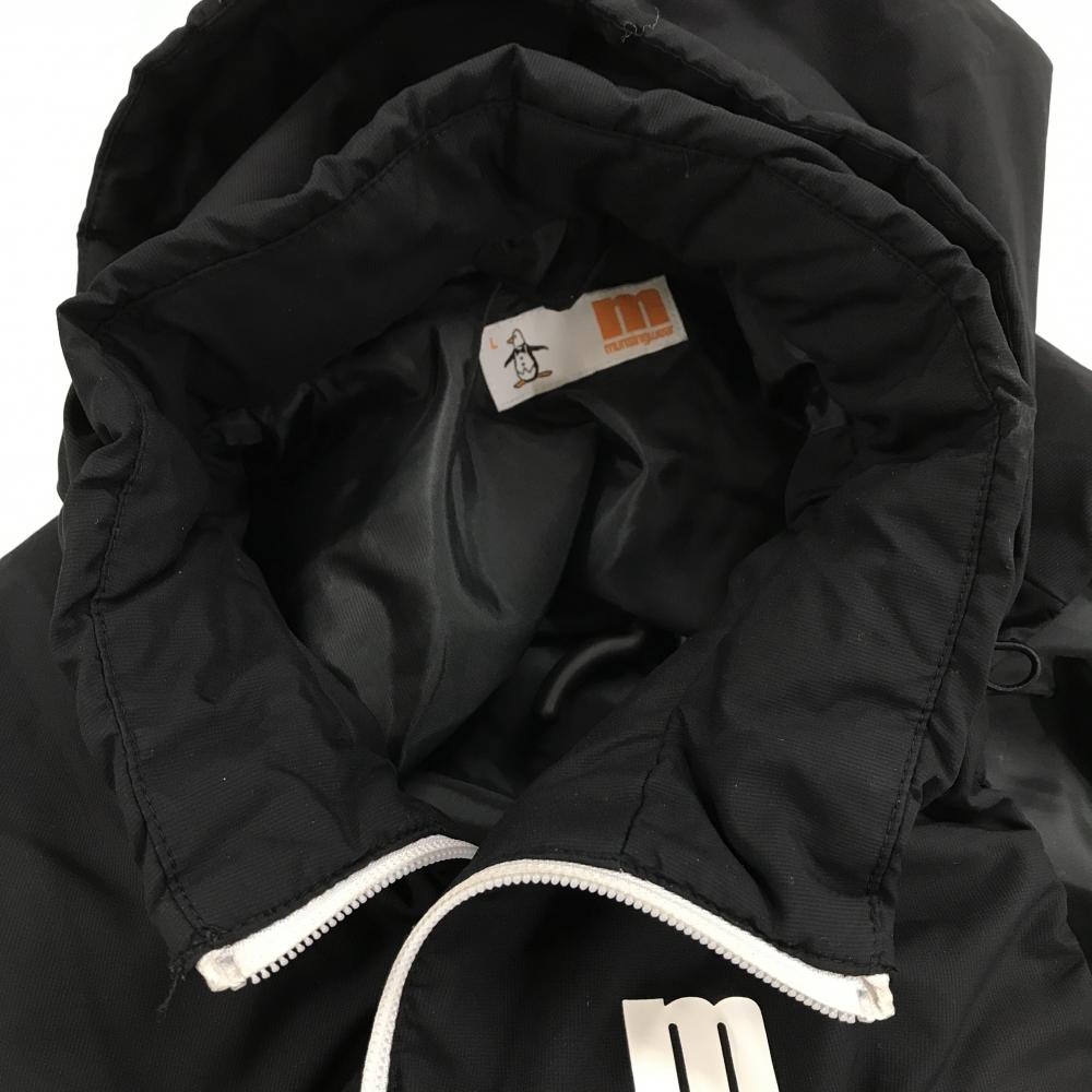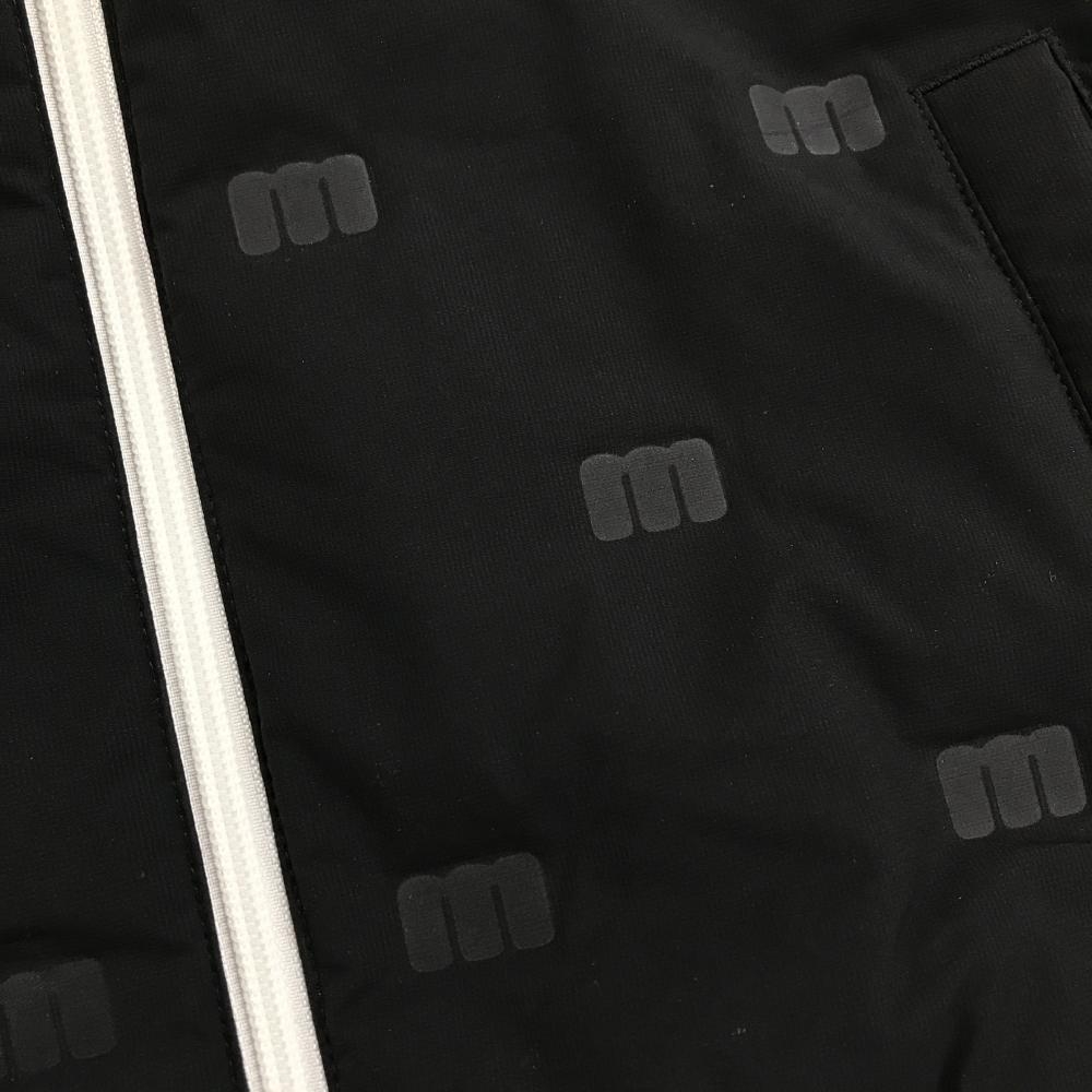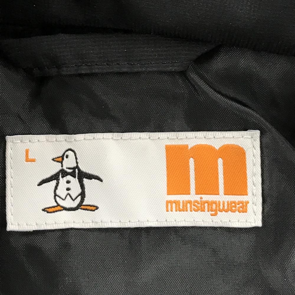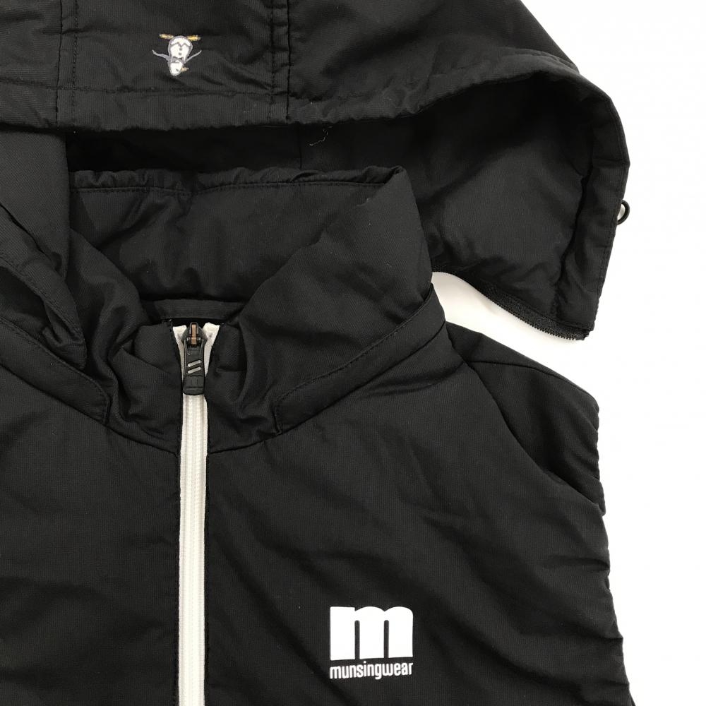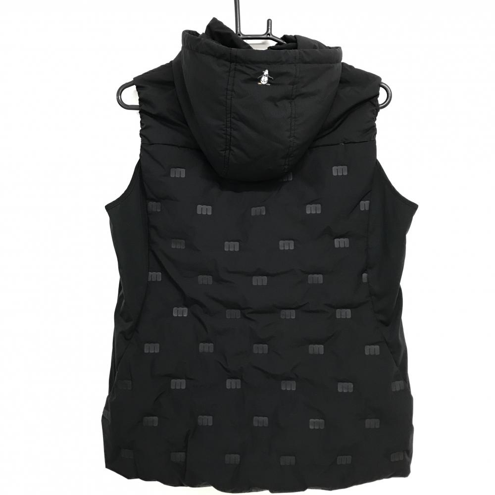 【美品】マンシングウェア ダウンベスト 黒 一部ロゴ柄 フード取外し可 切替 レディース L ゴルフウェア Munsingwear