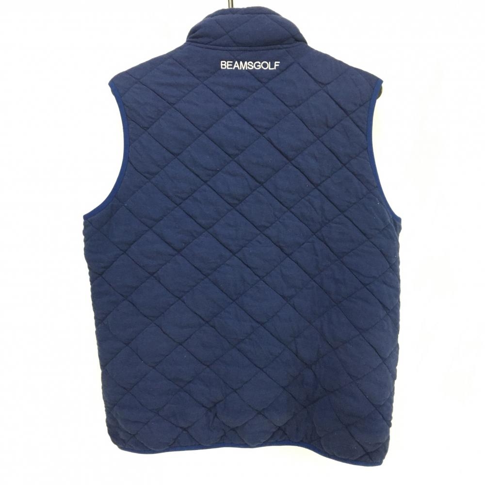 ビームスゴルフ アウターベスト ネイビー×白 切替 キルティング 胸ロゴ メンズ L ゴルフウェア BEAMS GOLF